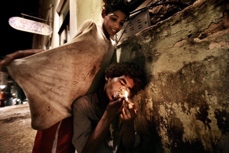 Bendato per non riconoscere i luoghi in cui si muoveva, il fotografo è riuscito a farsi accompagnare nelle “cucine della droga” dove il paco viene creato e ha potuto seguire le vite distrutte dei consumatori di questa droga e le loro famiglie da vicino, ritraendoli nelle sue immagini dal grande impatto emotivo e narrativo.