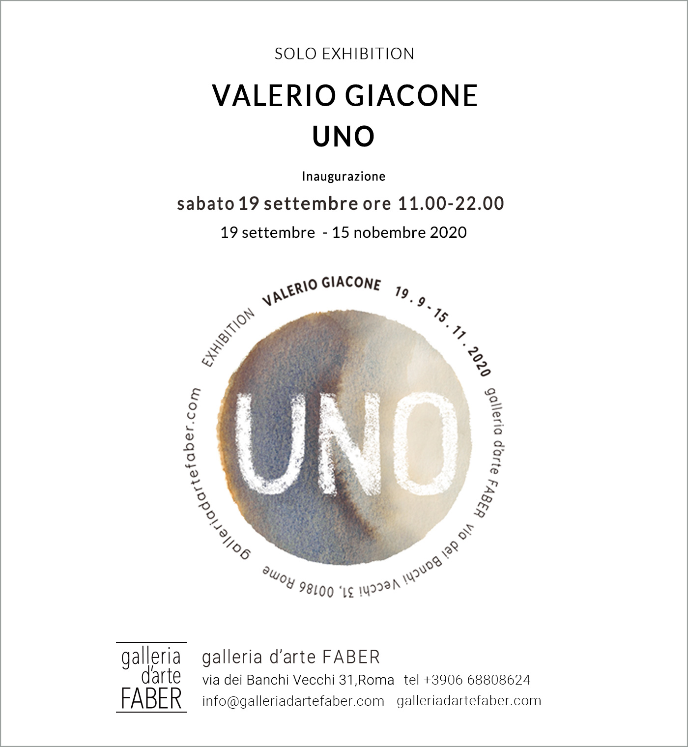 Sabato 19 settembre la galleria d'arte FABER ospiterà la mostra UNO di Valerio Giacone.