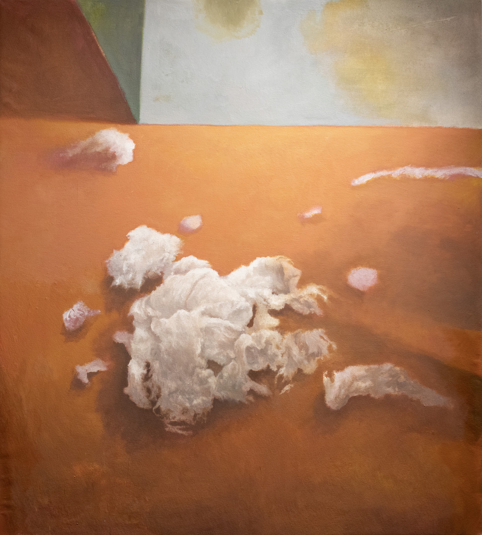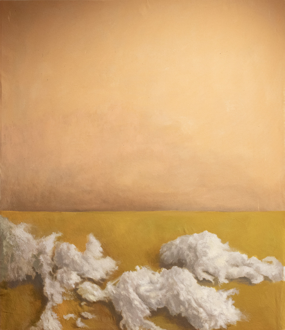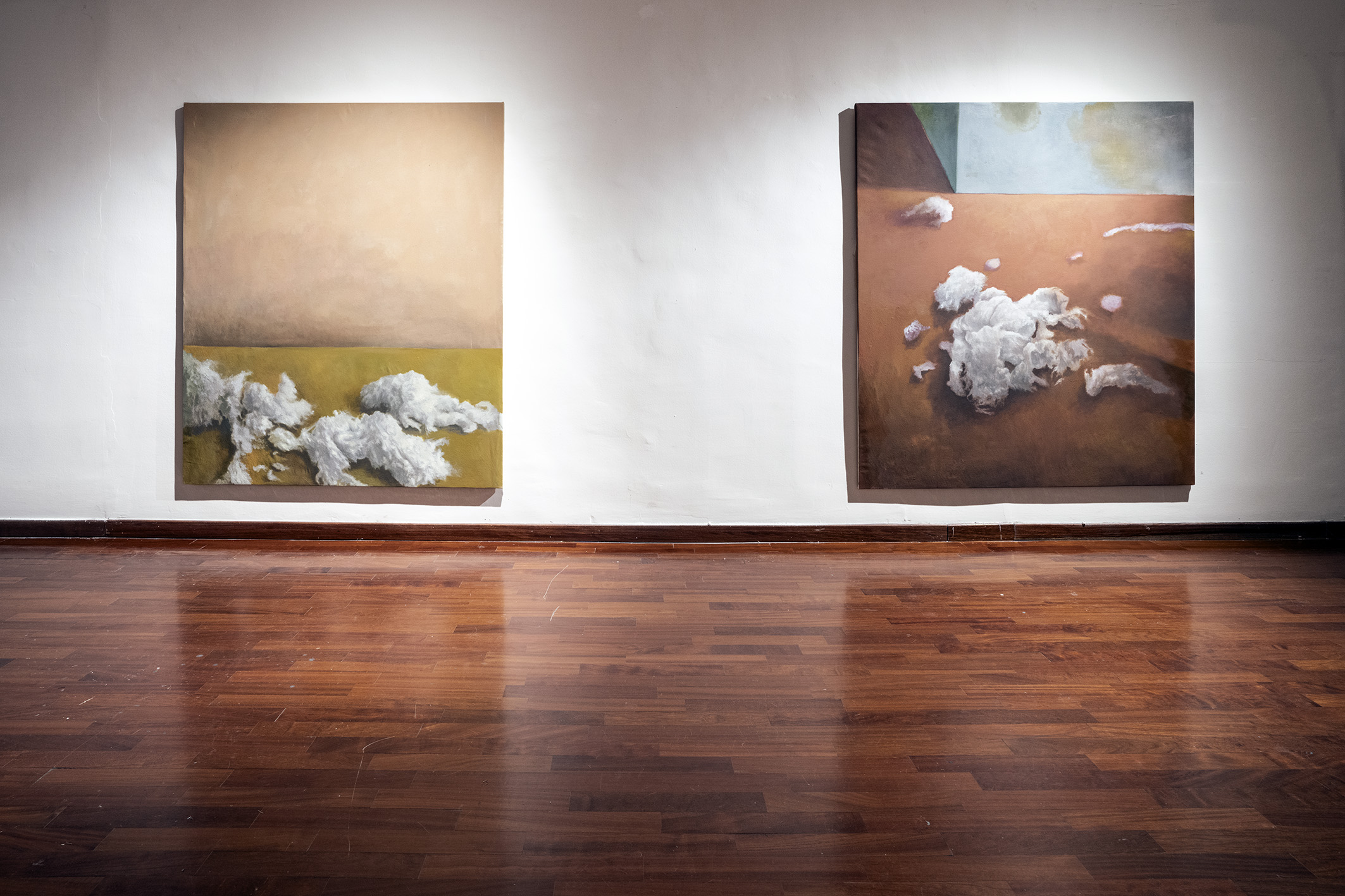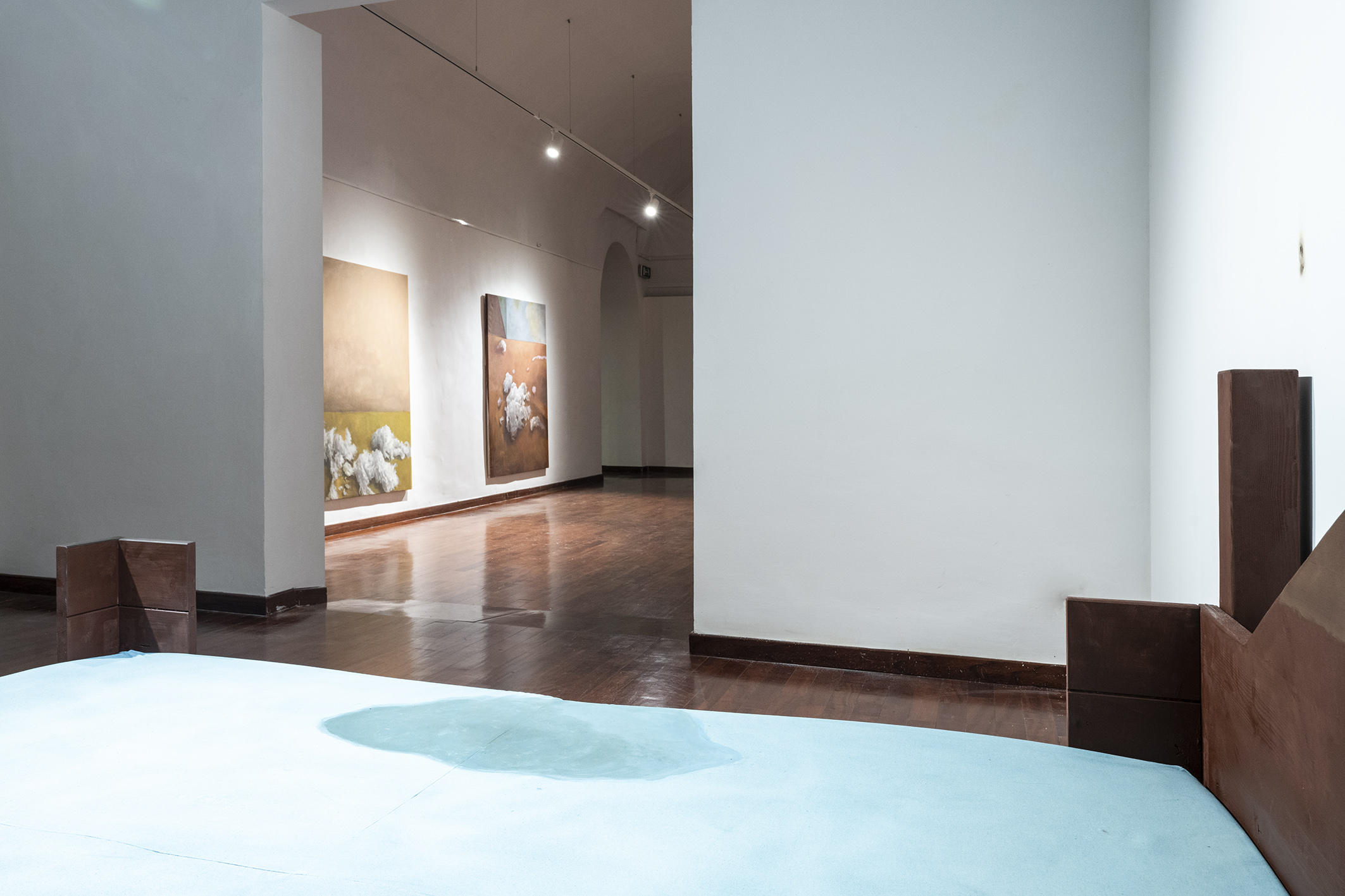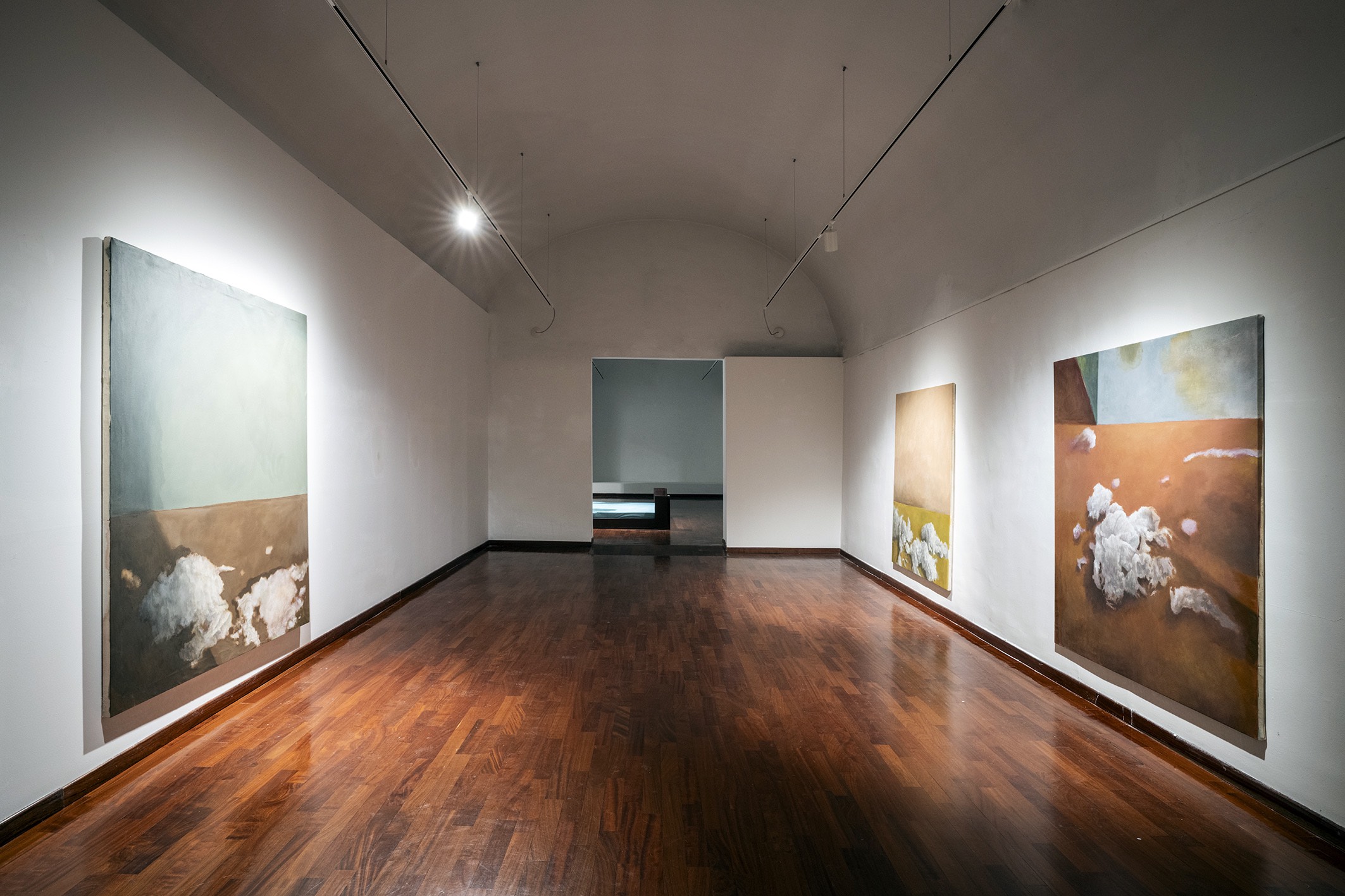 Le opere in mostra vogliono giocare in modo astuto con lo spettatore: le dimensioni delle cose cambiano, altri mondi penetrano nella pittura, e l'alchimia tra astratto e figurativo permea l'intera esposizione. Paesaggi rovesciati si svelano, dove nuvole di cotone posate a terra evocano immagini celesti. Il letto diventa dipinto, e le serie di dipinti dell’ultima sala rimpiccioliscono. Con maestria, la mostra eleva gli elementi terreni a una dimensione leggera e gioiosa, inclinando la visione dello spettatore a volare oltre i confini delle convenzioni. In questa sinfonia di forme e colori, l'esposizione diventa un invito a esplorare mondi nuovi, a riscrivere i limiti della percezione e a celebrare la magia dell'arte in cui anche il vuoto diventa pittura.