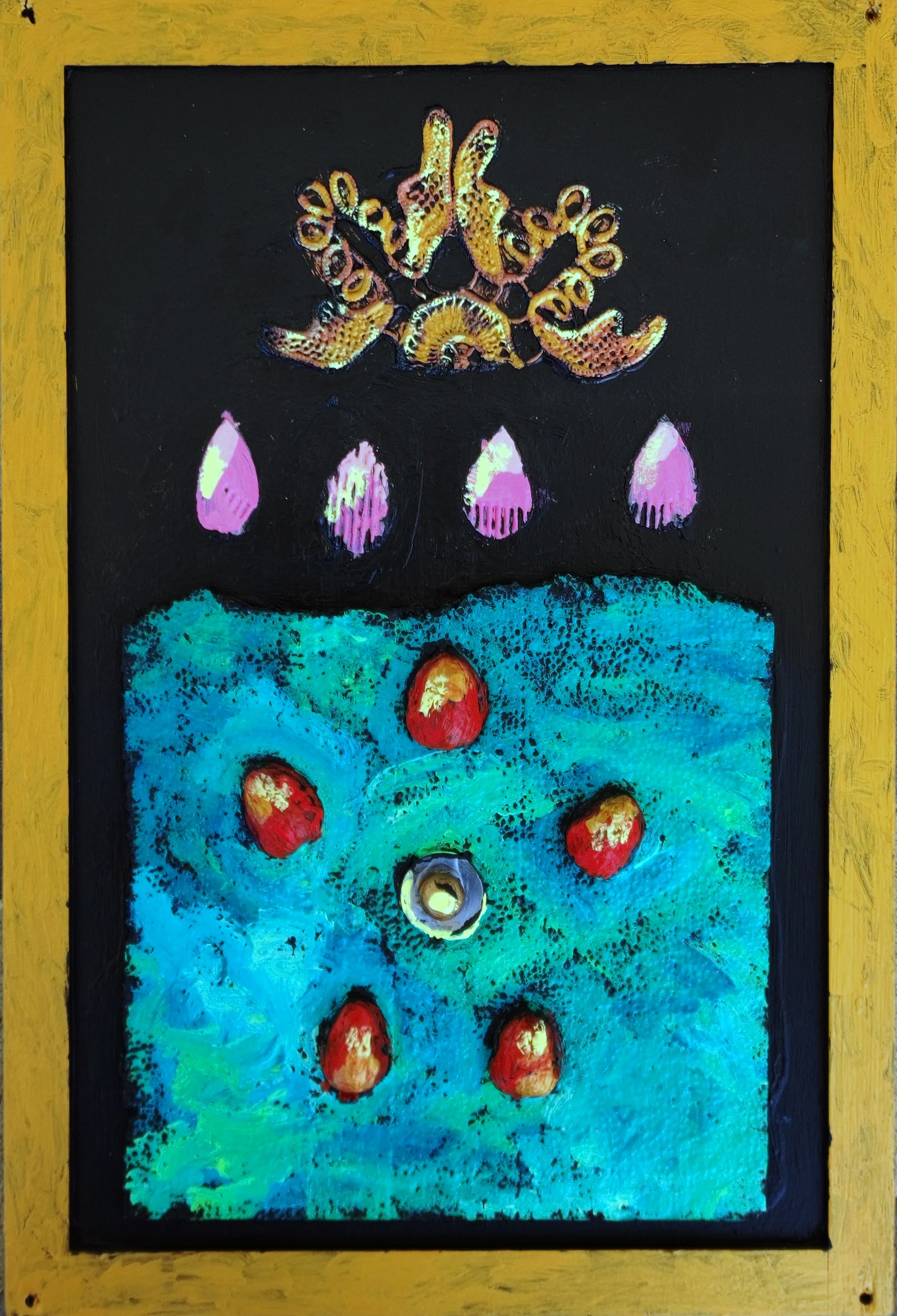 Il mondo dell’arte è costellato di esempi che dimostrano come le “difformità caratteriali” rappresentano (se emancipate nella giusta maniera) le basi dell’originalità comunicativa e della forza espressiva. Un altro esempio è quello dell’artista olandese, Vincent Van Gogh (Zundert, Paesi Bassi, 30 marzo 1853 - Auvers-sur-Oise, Francia, 29 luglio 1890) il quale trasformò la sua epilessia (come sottolinea il professore Adam Zeman, docente di “neurologia comportamentale” alla “Università di Exeter” di Devon, in Inghilterra) nella «materia indecifrabile della creatività». Nessuno degli artisti fin qui citati si è fermato dal realizzare la sua storia individuale, trasformando in bellezza la sua diversabilità. E questo vale, anche, per Valerio Viggiano che con l’assistenza dell’artista, Marco Santoro ha dimostrato di possedere una “vena creativa” che straripa (con la potenza di un fiume di passione) nelle “imago ripe” (inconsce e fantasmagoriche) della fantasia e della creatività. L’impronta di fondo dei lavori di Valerio Viggiano (esposti alla “Galleria Idearte” di Potenza, diretta da Grazia Lo Re) appartiene al “modus operandi” di Marco Santoro. Equivalente è la sua maniera d’intendere la “partitura degli spazi”. Similare è il suo uso dei “materiali poveri”. Ed omogeneo è il suo ricorso: sia ad una quantità di simboli (fatti di ricami, di cordami, di forme minerali, di profili di fauna volatile e di sagome vegetali) e sia ad una tavolozza cromatica (cangiante e iridescente) che hanno portato Marco Santoro a ricoprire un ruolo di primissimo piano nel campo dell’arte contemporanea internazionale. Nelle opere di Valerio Viggiano ritroviamo, altresì, lo “spirito filologico” e il “carattere speculativo” delle opere dell’artista Bruno Ceccobelli (Montecastello di Vibio, 2 settembre 1952): che in molti casi divide in due parti il piano prospettico dell’opera, in una maniera tale che il lato destro del quadro combacia “a specchio” con quello sinistro, tanto nella sua “morfologia segnica” e tanto, pure, nella sua “struttura calligrafica” (ornata, polisemica e polisemantica). E viceversa: lato sinistro e lato destro. La “distribuzione aritmetica” di alcune delle “strutture geometrico-astratte” (che ritroviamo in alcuni dei lavori di Valerio Viggiano) richiama, per di più, la distribuzione in diversi “scomparti logici” e in più “sezioni regolari” realizzati dall’artista (di origini ebreo-marrane) Tobia Vanalesti (Bari, 1937): che nel 1985 firmò - con il pittore materano, Giovanni Dell’Acqua (Matera, 1952) - un manifesto progettuale sullo “Spazio Ludico”. In questa maniera nasce (nei lavori del giovane Valerio) una sorta di “casellario formale” (opposto al reale e al sostanziale) da cui emerge (in maniera astratto/geometrica) il “principio soggettivo kantiano” che stimola a riflettere sul «Cosa posso sapere? Come devo agire? E cosa posso sperare?». L’insoliticità dei materiali utilizzati da Valerio Viggiano lo porta, inoltre, ad un altro possibile accostamento: quello con l’artista montalbanese, Giuseppe Filardi (Matera, 22 febbraio 1956 – Rionero in Vulture, 19 febbraio 2021) che nel ciclo pittorico intitolato “Nerofumo” utilizzò la sagoma del vassoio di cartone (privato dei suoi effetti funzionali) come una “particella simmetrica” e come uno “spartito euritmico” dove distribuire (dentro e fuori della guantiera/cabarè) i segni di un linguaggio stilistico, astratto-informale, fuori dai canoni comuni.