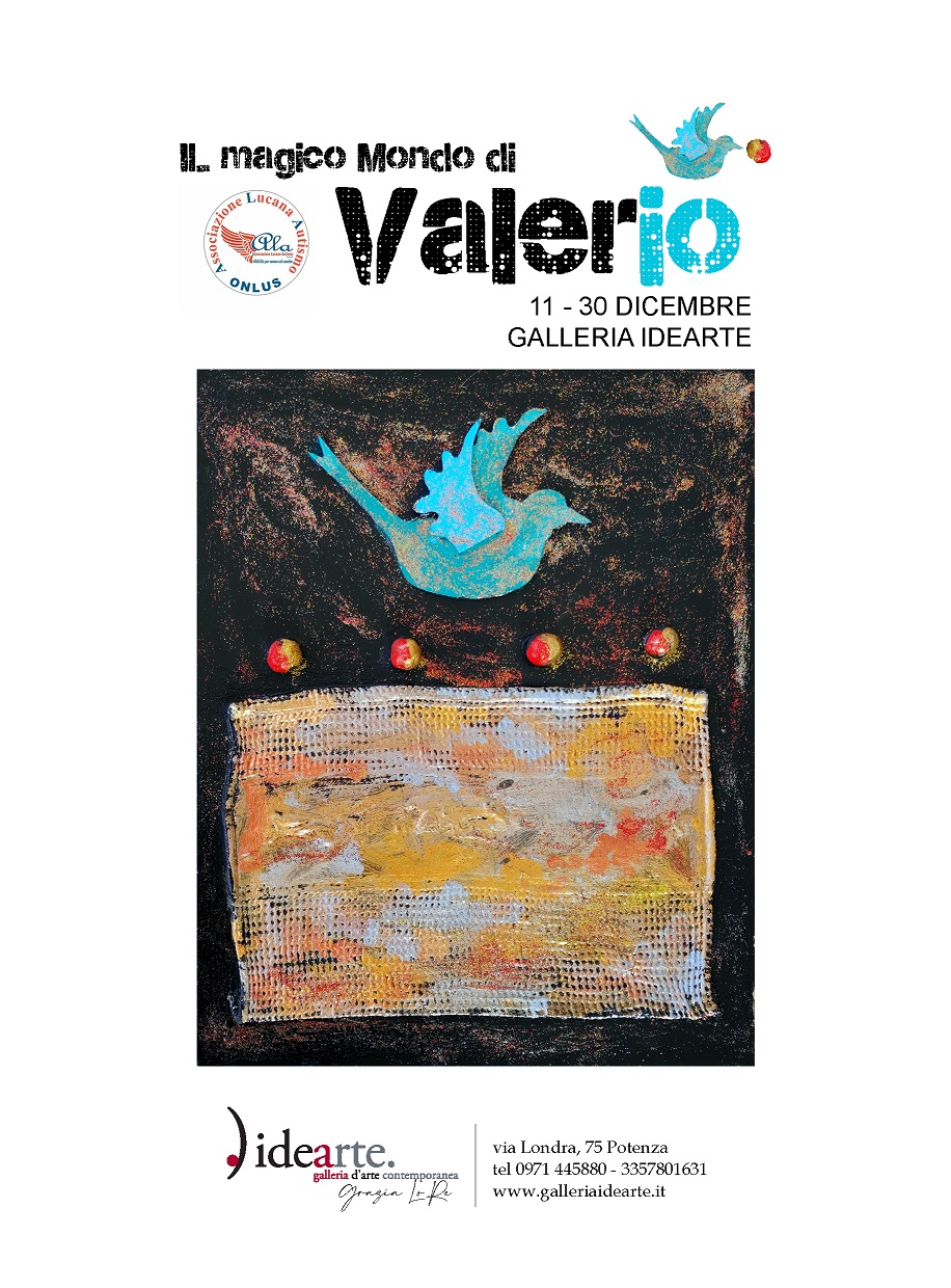 Domenica 11 dicembre, alle ore 17,30, negli spazi della Galleria Idearte di Potenza, al n. 75 di Via Londra, sarà inaugurata la mostra : IL MAGICO MONDO DI VALERIO.