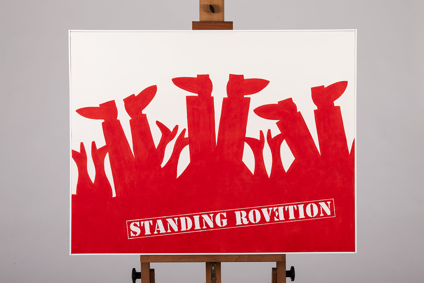 “PROTESTA”, meglio nota come “STANDING ROVETION”, per via della scritta presente sulla tela, la quale misura 90x70 ed è dipinta in acrilico.