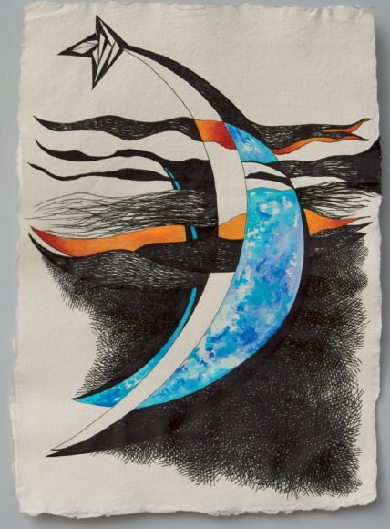Oltre il disegno, è ancora il colore il protagonista dell’opera, quale risultato di una pennellata che segna la luce e l’ombra e ne definisce l’oscillazione cosmica di un nuovo ordine di realtà: una oggettività immaginaria in cui sembra sopraggiungere la notte piuttosto come memoria ed evocazione, che si confonde con la luce e con gli elementi della natura: la luna come attrazione e seduzione, o incanto onirico. La sensibilità dell’imprecisato ricordo investe queste apparentemente esili carte in cui l’autenticità della vibrazione del segno e del colore, anche demandata all’avorio della filigrana della carta, si moltiplica all’infinito.