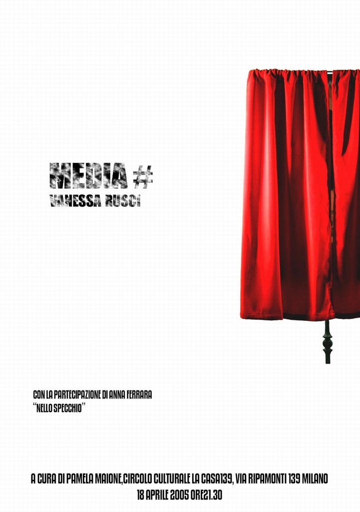 Vanessa Rusci, sconvolge i ruoli, con un richiamo Pirandelliano nel suo lavoro si diverte a invertire i ruoli, lo sfuggente spettatore viene bloccato, invitato a partecipare all’opera d’arte, non è solo più spettatore ma diventa artista o burattino della commedia creata per l’occasione, con i suoi “intrattenimenti” Vanessa Rusci svela realtà, crea paradossi, provoca e non da risposte o ne da senza possibilità di interpretazione. In Media# (medianumber) si svelano meccanismi automatici, si copre per far scattare la curiosità, si uniscono significati profondi a significati frivoli, leggeri, si mostra qualcosa che lascia indifferenti, incuriositi, poi alla fine increduli, e a volte, come spesso succede nel rapporto coi media, l’involucro è vuoto e dietro la tenda, non si trova proprio nulla.