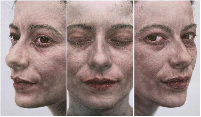 Comoretti utilizza un procedimento di ingrandimento e di focalizzazione del dettaglio, portando in luce il particolare per studiarne il colore, la luce, la brillantezza, la tessitura biologica. Così facendo Comoretti usa l’idea dello “studio” antico, dello schizzo preparatore, che nel disegno antico accoglieva su uno stesso foglio varie pose del capo e dettagli espressivi. Ella traccia una bio-logia, una logica del bios, del corpo organico che nella sua configurazione può diventare scrittura, geroglifico, perfino simbolo. Molta filosofia contemporanea ha sostenuto una rivalutazione del corpo nei confronti dell’anima, ribaltando la logica meccanicistica che la modernità aveva ricavato da Cartesio, per avvalorare la tesi di un corpo che è anche anima e di un’anima che è anche corpo, ovvero di una non separabilità tra quella scrittura fisica e organica che è il nostro corpo e quel principio ordinatore che detta le regole di tale scrittura, qual è l’anima.