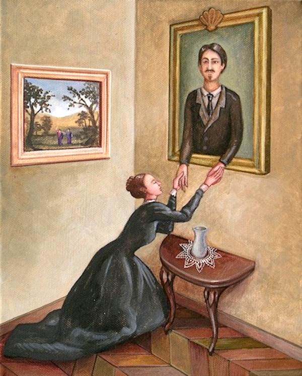 La mostra, comprende lavori tutti del 2012 (acrilici su tela e su MDF), ispirati al mondo degli ex voto che in questo caso sono trattati con una lieve ironia e uno sguardo laico. La Confraternita della Salvezza ci porta in un piccolo universo domestico nel quale l’impossibile diventa probabile dando inizio a una narrazione ironica, sincopata da piccoli palcoscenici votivi che si trasformano in scenari pieni di sorprese. Si traccia un universo popolare e piccolo borghese che modifica i riferimenti vittoriani di Vanni Cuoghi e le visioni oniriche di Ilaria Del Monte in un mondo praticabile, più naturalistico, dove l’idea convenzionale e proporzionale non viene annullata e nel quale si parla di passioni, di mancanze e di assenze, di figure femminili che sembrano bloccate dalle loro paure. Sono opere di piccole dimensioni lontane dal gusto compendiario di una pittura di genere, ma piuttosto concentrate su meccanismi focalizzati sull’attenzione al dettaglio. L’ironia che permea questi siparietti miracolistici si nutre di particolari simbolici, mai banali, che si snocciolano intorno a temi che riguardano essenzialmente la relazione tra due individui e la loro relazione con il mondo.