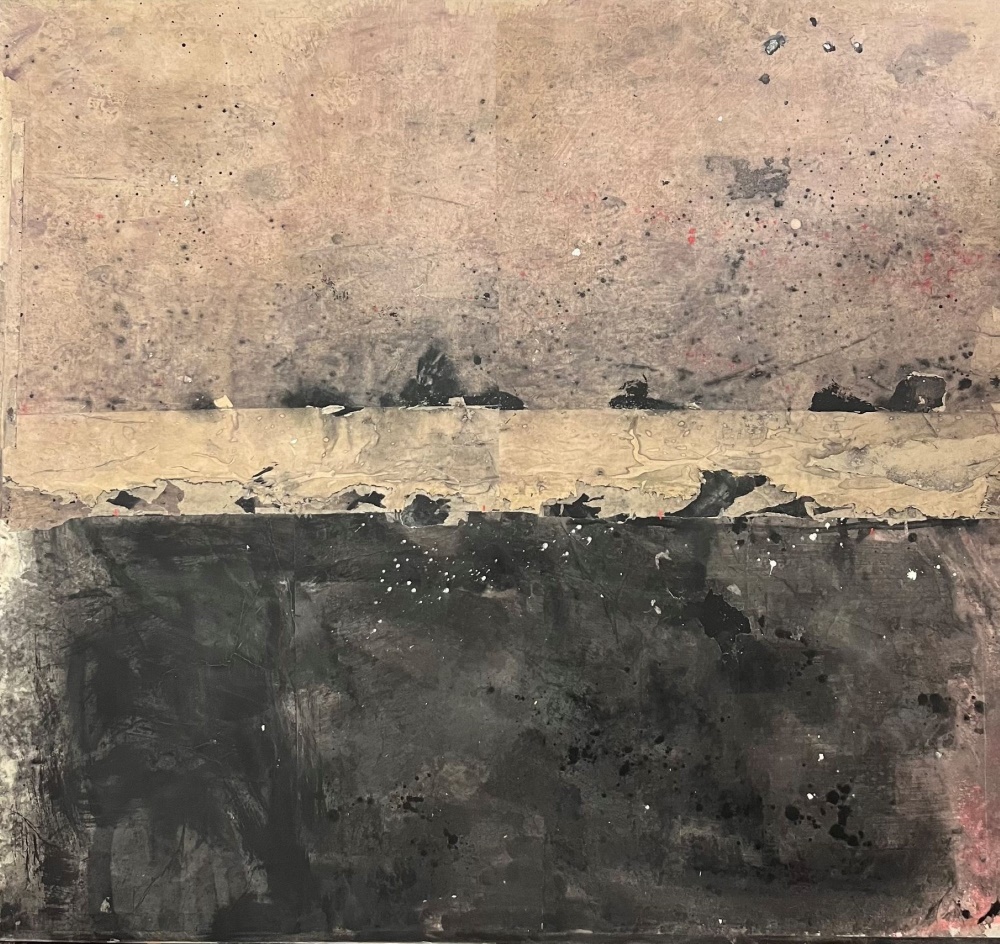 In mostra grandi opere recenti del ciclo ‘Orizzonti’. Scrive il curatore Pasquale Fameli ‘Le opere di questo ciclo sono basate sulla sovrapposizione di due piani distinti che ci inducono a distinguere alto e basso, verticale e orizzontale, nonostante la totale assenza di profondità.’