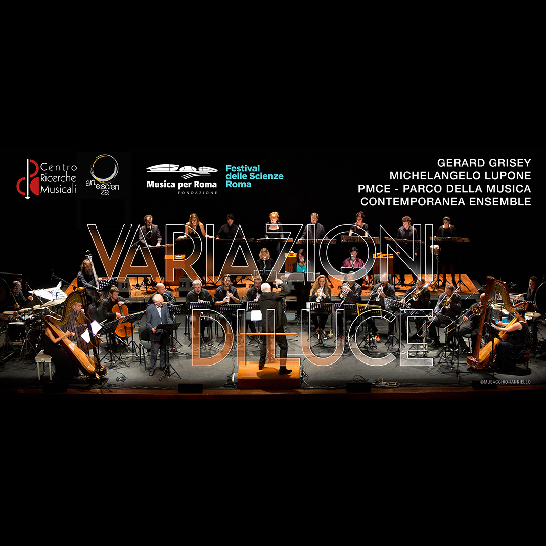 Il concerto Variazioni di Luce del PMCE – Parco della Musica Contemporanea Ensemble diretto da Tonino Battista, collaborazione fra ArteScienza e Fondazione Musica per Roma, vede in programma Sortie vers la lumière du jour di Gérard Grisey e la prima assoluta di Michelangelo Lupone, Come Poli Varianti.