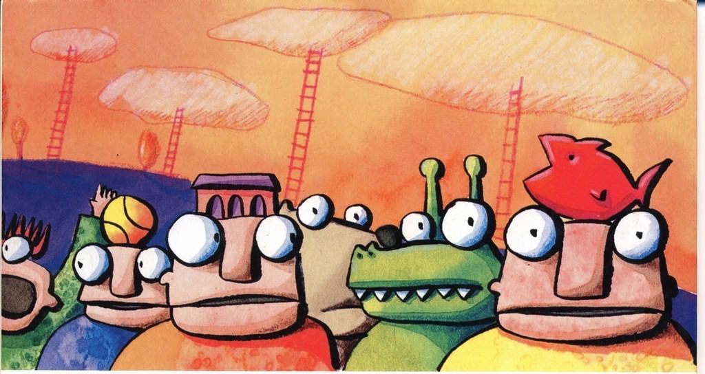 Con un segno surreale, sintetico e “pupazzettistico”, realizza storie in cui buffi personaggi, per lo più uguali come struttura fisica ma connotati da un oggetto sulla testa, come un pettine oppure una pallina da tennis, attraverso discorsi surreali e non-sense, sottolinea la banalità comunicativa che contraddistingue il più delle volte i rapporti sociali.