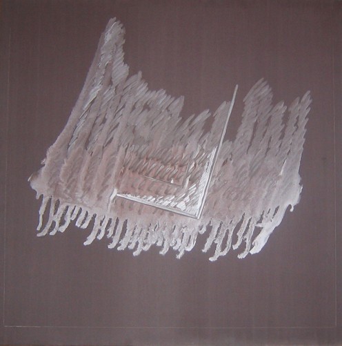 Si tratta di opere ad olio su tela di medie dimensioni, alcune con applicazioni di materiali diversi, e di altre eseguite su lamine di alluminio. È questa una tecnica che l’artista ha iniziato a sperimentare proprio agli inizi degli anni Settanta e che continua ad applicare tutt’oggi con grande felicità di risultati, come appare dalle opere del 2004 attualmente esposte in Galleria de’ Foscherari.