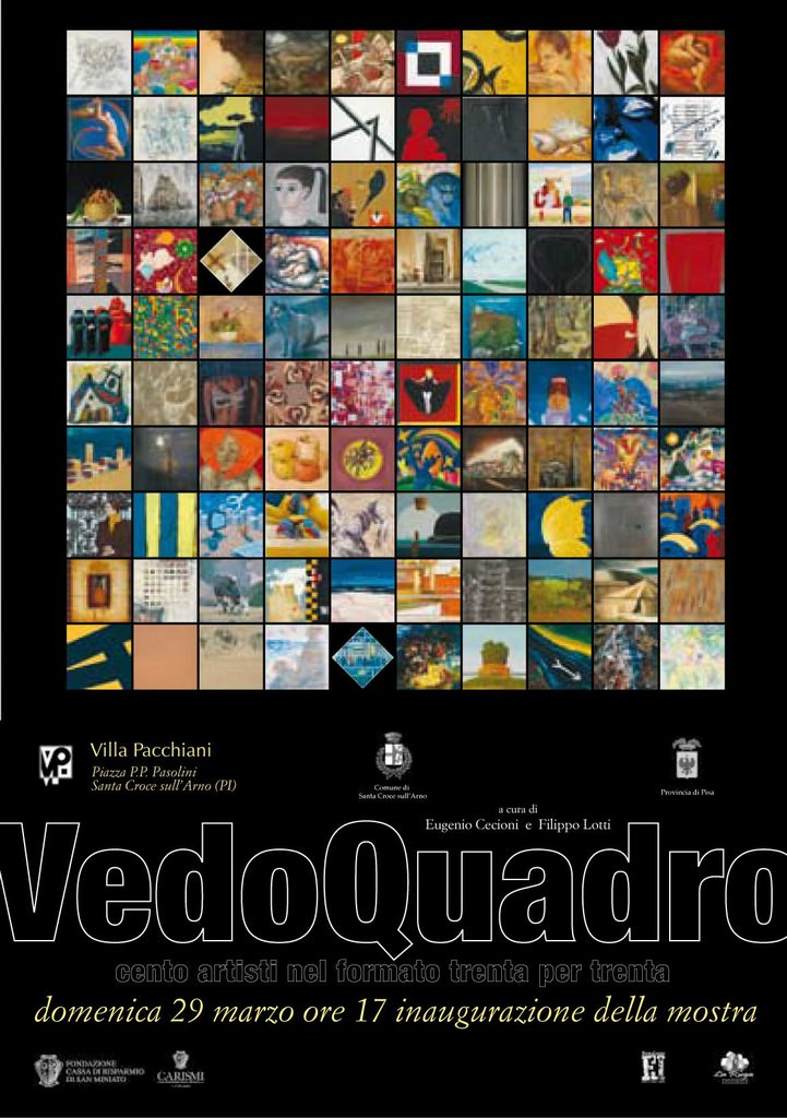 Si inaugura domenica 29 marzo p.v., a Santa Croce sull’Arno (Pisa), alle ore 17.00, presso il Centro attività espressive di “Villa Pacchiani” in piazza Pier Paolo Pasolini, la mostra collettiva di pittura dal titolo VedoQuadro – cento artisti nel formato trenta per trenta.