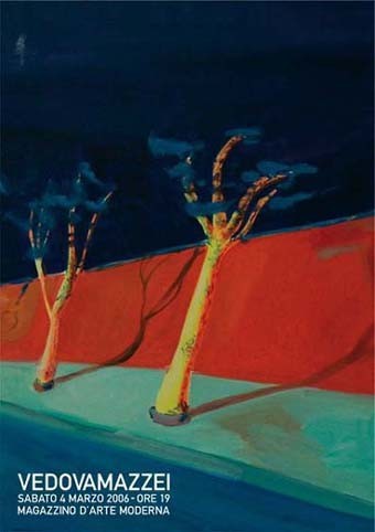 Il Magazzino d¹Arte Moderna di Roma presenta la prima mostra di pittura di Vedovamazzei. Il duo di artisti, Simeone Crispino e Stella Scala, conosciuti a livello internazionale per un modo di fare arte ironico e trasversale, che utilizza i mezzi più disparati per provocare discussione sull¹arte e sui suoi presupposti formali ed intellettuali, propone in questa occasione una mostra di dipinti. Oli e acrilici su tela, di grande e medio formato sintetizzano in maniera del tutto personale, l¹approdo della pittura contemporanea internazionale che rilegge la realtà attraverso grandi paesaggi, interni e ritratti. Vedovamazzei ripropone in chiave moderna e sorprendente la visione classica della prospettiva a volo d¹uccello, come della più moderna prospettiva a campo lungo che trova la propria patria nella pittura americana del secolo scorso, così come un occhio allo stesso tempo ironico e disincantato su caratteri umani della società contemporanea. Così una visione a metà tra sogno e disincanto, dove la tradizione si fonde ad elementi contemporanei e demistificatori, diventa lo statement per una nuova pittura, in cui la tecnica e la composizione ritornano ad essere protagonisti.
