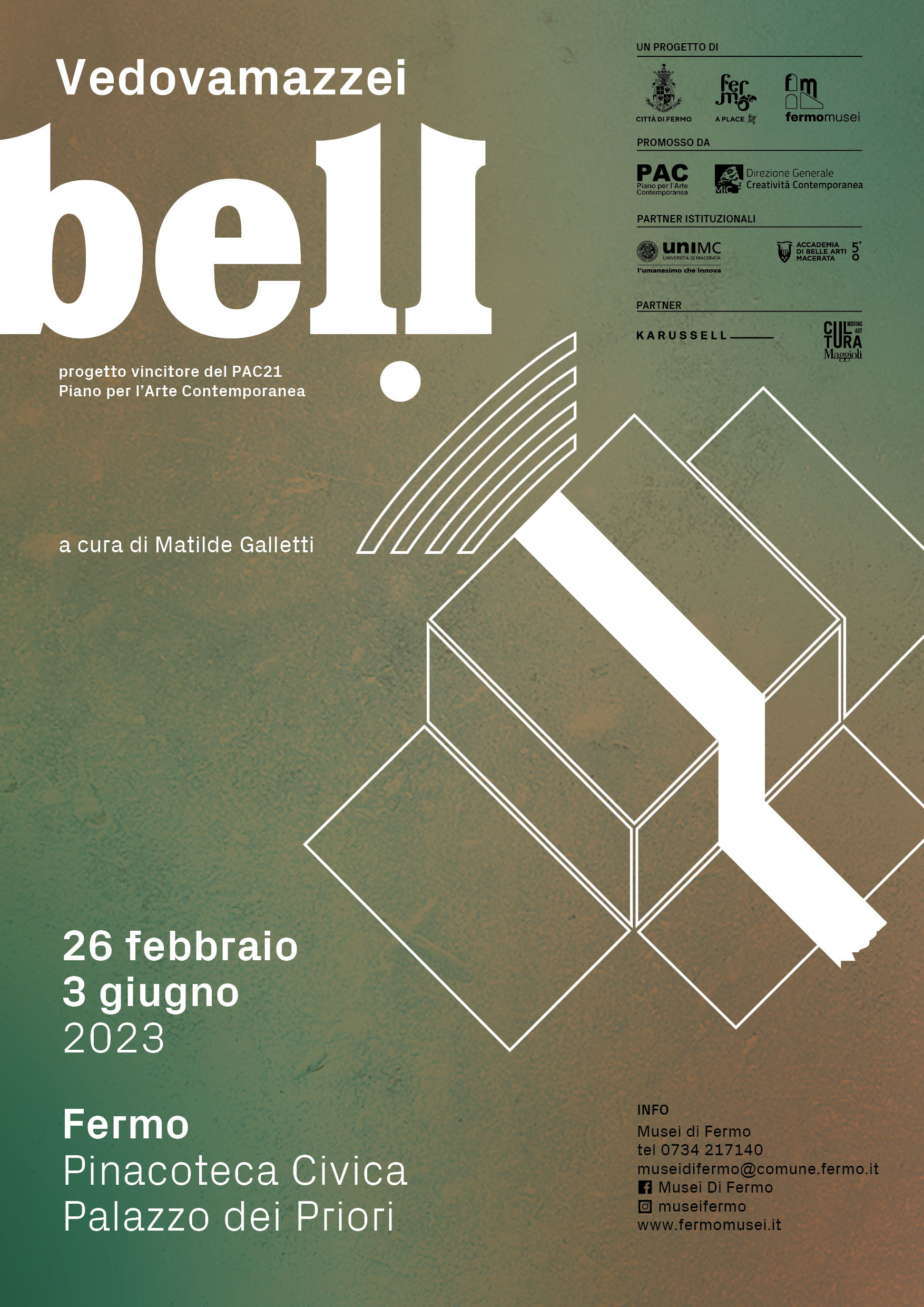 Il celebre duo artistico Vedovamazzei è protagonista del progetto “Bell” ideato e curato dalla prof.ssa Matilde Galletti e con il quale la città di Fermo è risultata vincitrice del “PAC2021 - Piano per l'Arte Contemporanea”, promosso dalla Direzione Generale Creatività Contemporanea del Ministero della Cultura.