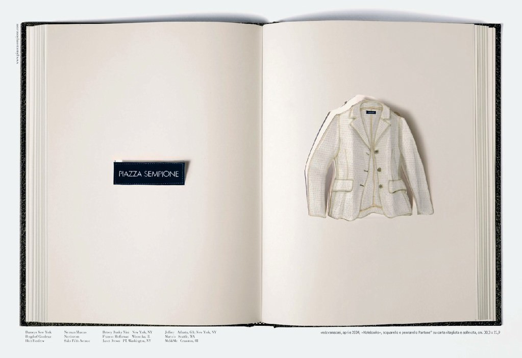 L’opera notebooks consiste di 71 quaderni, realizzati da vedovamazzei con tecniche miste per Piazza Sempione, una sorta di appunti sul prodotto e la vita quotidiana dell’azienda.