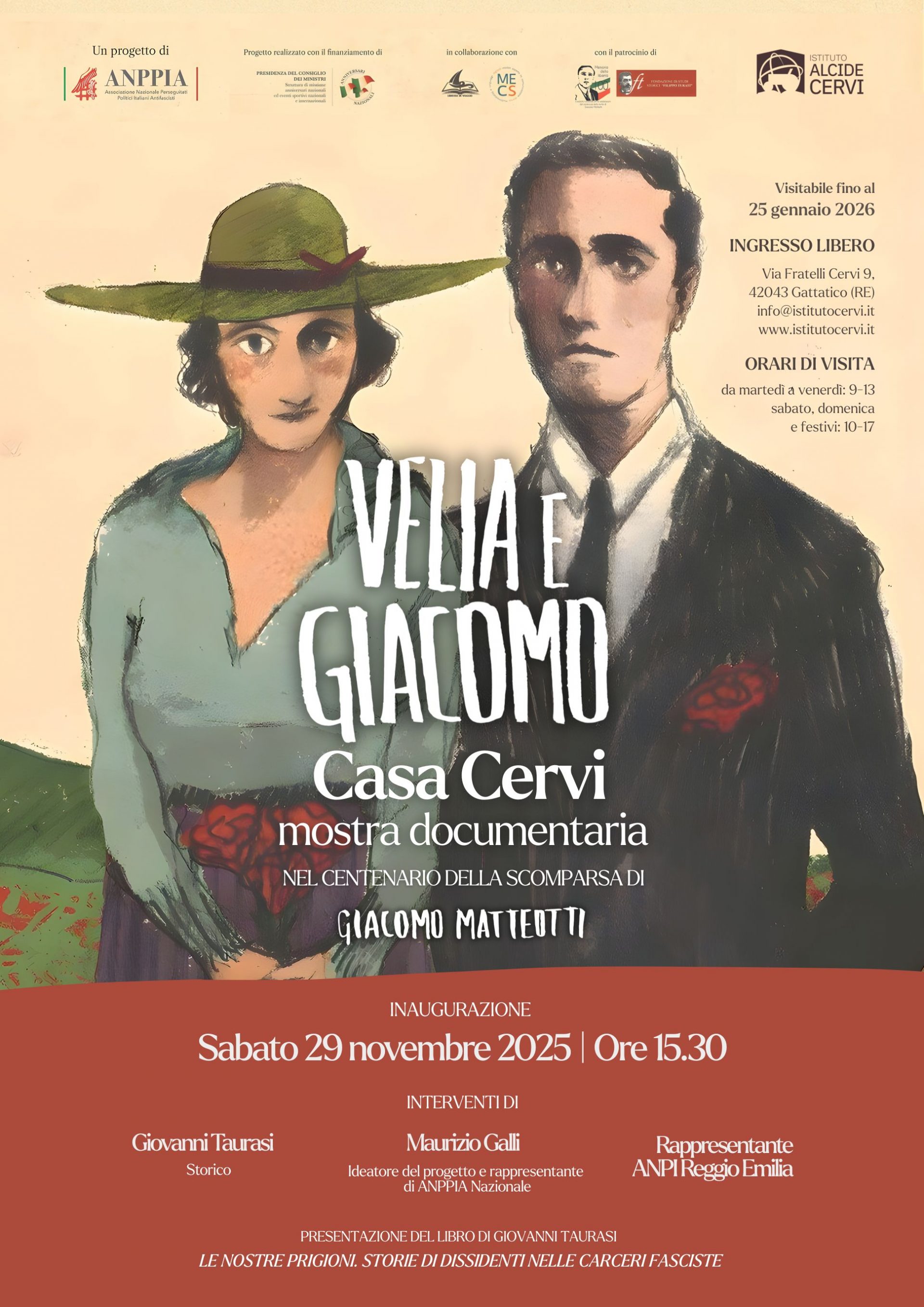 A un secolo dalla morte di Giacomo Matteotti, l’Istituto Alcide Cervi propone la mostra documentaria “Velia e Giacomo”, un progetto dell’ANPPIA Nazionale dedicato alla vicenda personale e familiare del deputato socialista e di sua moglie Velia Titta.