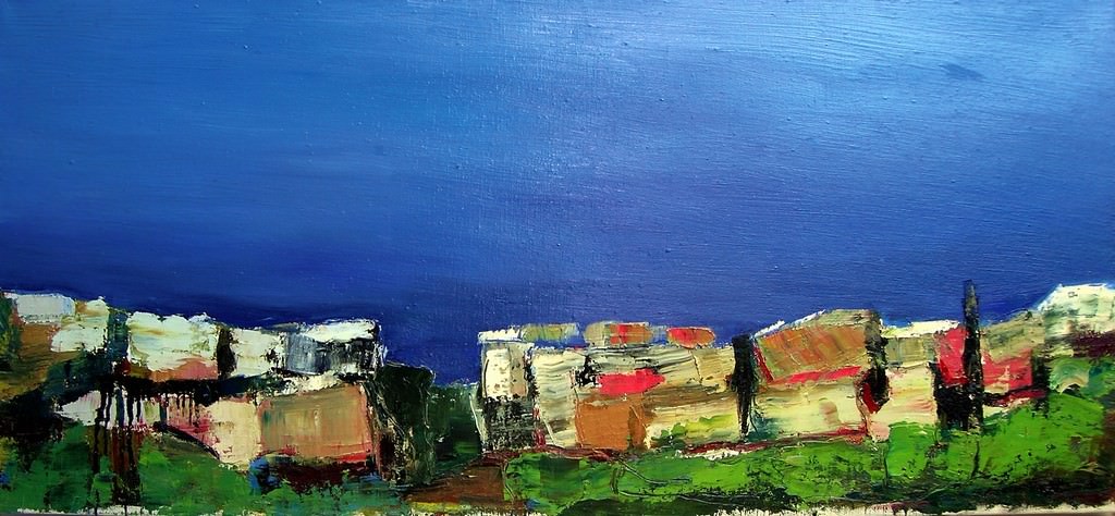 Per Venanzio Manciocchi la nuova la produzione è il risultato del viaggio itinerante nel suggestivo paesaggio meridionale italiano. C’è il sapore della costa di Sicilia, poi anche Otranto e Polignano. C’è il mare soprattutto, poi tutt’intorno spiagge, coste, accenni di rocce, di case. Raccogliere l’essenza della natura in una tela con la stessa intensità con cui l’artista la accoglie mentre osserva il paesaggio. Poetica ed emozionale è l’arte di Manciocchi che del paesaggio ne coglie il segno misterioso ed invisibile. Si avverte l’aria, il sale, il fresco del mare, i respiri e l’incanto dei luoghi. Maestrie di spatola ed olio creano il paesaggio informale su cui rimane la sensazione vissuta, interpretata dal gesto materico e luminoso intriso di vibrazioni e suggestioni visive. Venanzio Manciocchi nasce a Sermoneta (LT), insieme ad altri artisti fonda l’associazione culturale “Foglianoarte”, promuovendo e organizzando importanti mostre e rassegne d’arte contemporanea.