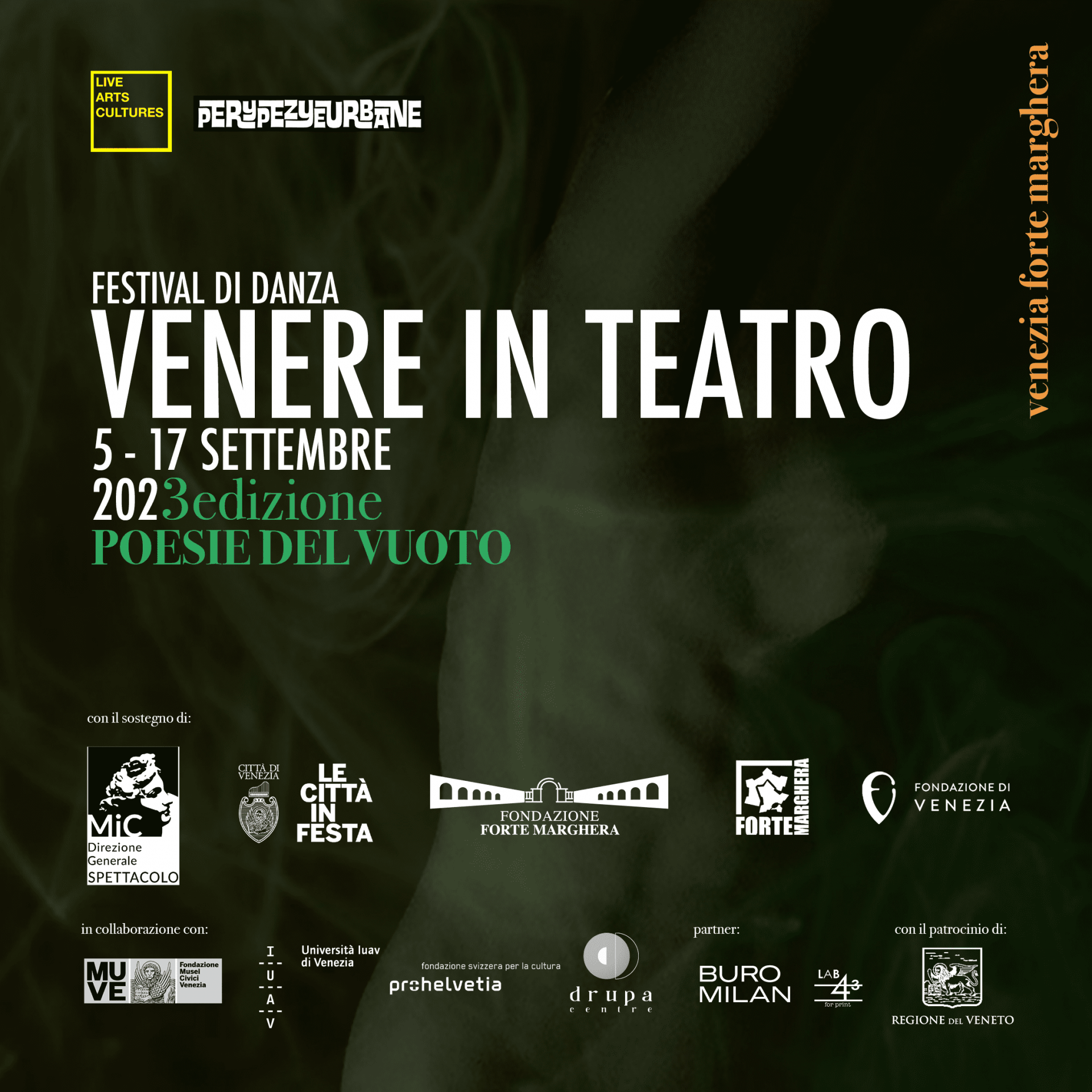 Nato all’interno di Forte Marghera, dove l’associazione curatrice di Venere, Live Arts Cultures, è attiva da molti anni, il Festival è l’appuntamento annuale che apre spazi non convenzionali alla ricerca coreutica in un cartellone che unisce grandi maestri a giovani produzioni.