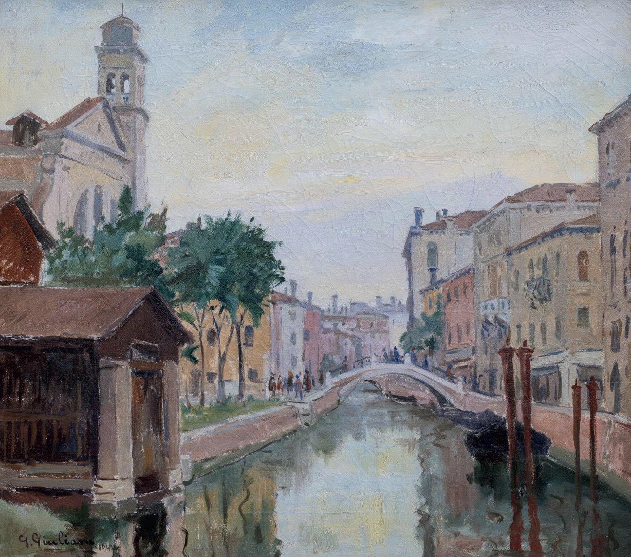 Giovanni Giuliani (Venezia, 1893 – Mogliano Veneto, 1965) fu incisore, pittore e docente. Formatosi all’Accademia di Belle Arti di Venezia e allievo di Ettore Tito, esordì giovanissimo nel 1913 alla Famiglia Artistica Milanese. Dopo la parentesi della Prima guerra mondiale, completò gli studi nel 1920 e iniziò a esporre con continuità alle mostre di Ca’ Pesaro e dell’Opera Bevilacqua La Masa. Partecipò regolarmente alla Biennale di Venezia tra il 1920 e il 1950 e fu presente in numerose esposizioni internazionali in Europa e nelle Americhe.