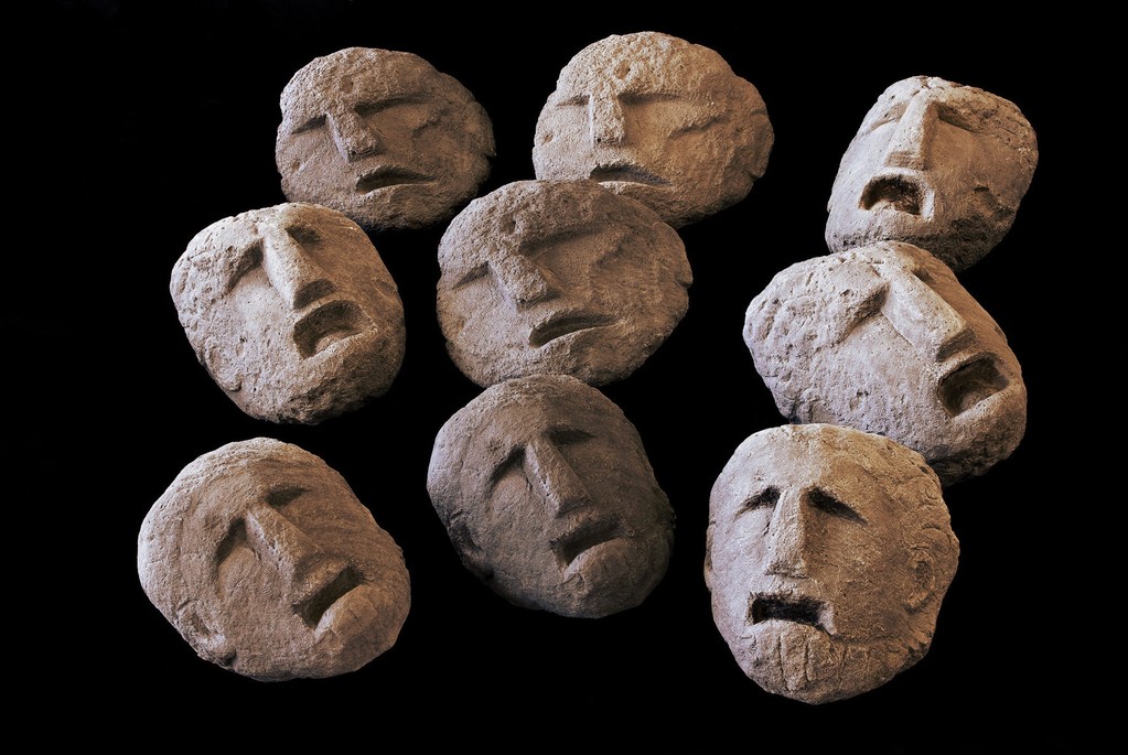 E così, per citare alcuni lavori esposti al Museo archeologico di Palermo, gessi, bronzi e pietre vulcaniche di Egina (isola dove ha sede lo studio dell'artista) diventano teste e volti, spesso dalla bocca semi aperta, di antichi guerrieri, eroi e semidei come nelle opere Agamennone (2005-2009) e Pelope (2009), accanto a Lance (2018) in marmo e ottone dorato che raccontano il passato dell'Egeo attraverso venature nascoste e si innalzano come baluardi, strumenti di difesa. In queste opere la materia prima determina il modellato estetico delle sculture che, a dialogo con l'ambiente in cui vengono presentate, mettono in risalto riferimenti storici e caratteristiche del luogo di provenienza, e raccontano così una sorta di storia personale che guida il visitatore nella loro contemplazione e interpretazione.