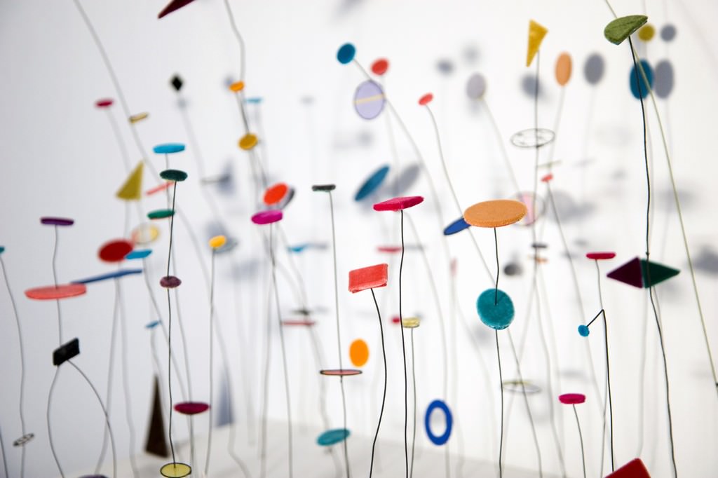 relazionano in equilibri dinamici con l’uso di magneti che “danno vita” e movimento alle opere. Segni