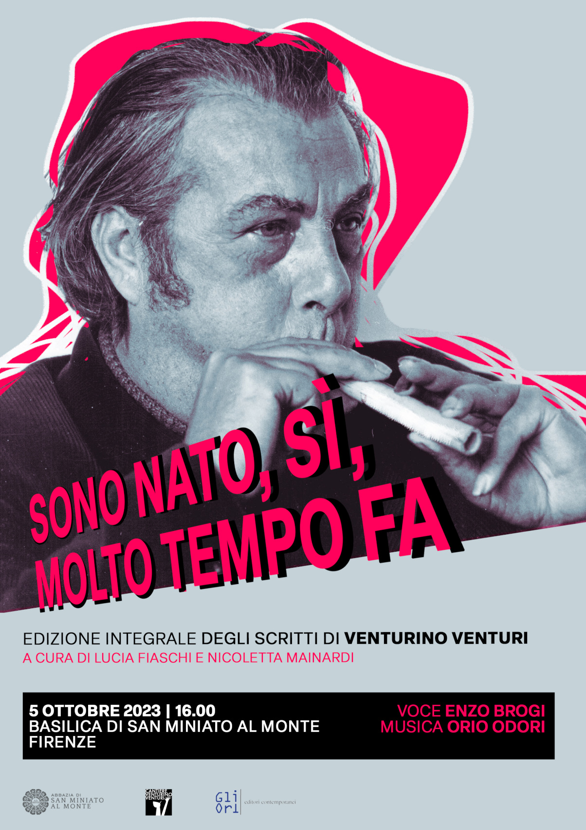 Giovedì 5 ottobre 2023 alle ore 16 nella Basilica di San Miniato al Monte a Firenze verrà presentato il volume Sono nato, sì, molto tempo fa, raccolta integrale di scritti inediti di Venturino Venturi (1918-2002) pubblicato nel 2023 da Gli Ori di Pistoia e curato da Lucia Fiaschi e Nicoletta Mainardi.