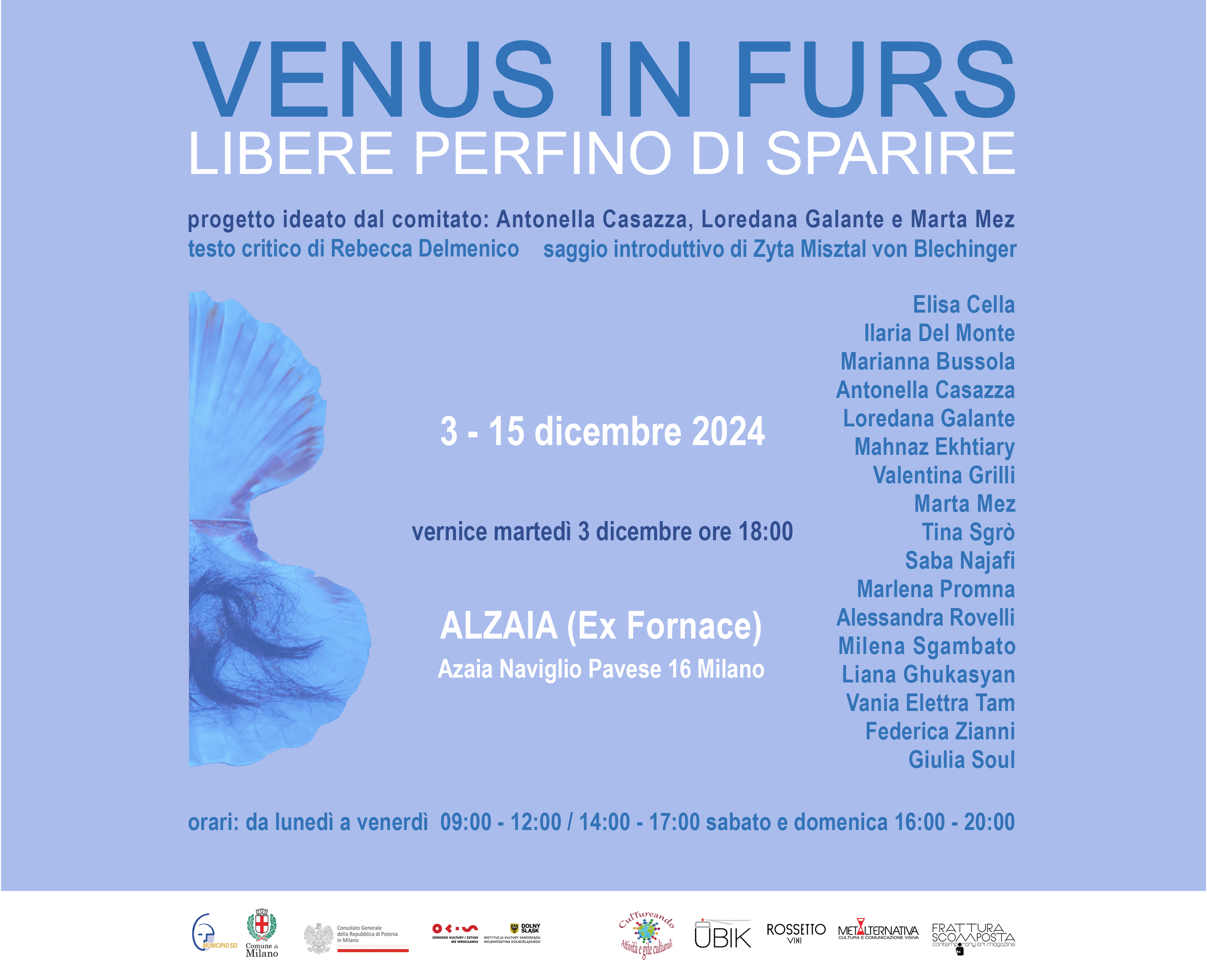 L’esposizione VENUS IN FURS – LIBERE PERFINO DI SPARIRE propone un confronto diretto e personale sul tema della discriminazione di genere, dove la donna – libera “perfino di sparire” – è protagonista di una lotta per l’autodeterminazione e la rinascita. La mostra nasce dall’iniziativa delle artiste Loredana Galante, Antonella Casazza e Marta Mez, fondatrici del progetto espositivo Venus in Furs, nato all'inizio del 2024. Venus in Furs ha già realizzato quattro esposizioni e alcuni talk, con l'obiettivo di promuovere espressioni artistiche inclusive che esplorano il tema dell’identità femminile.