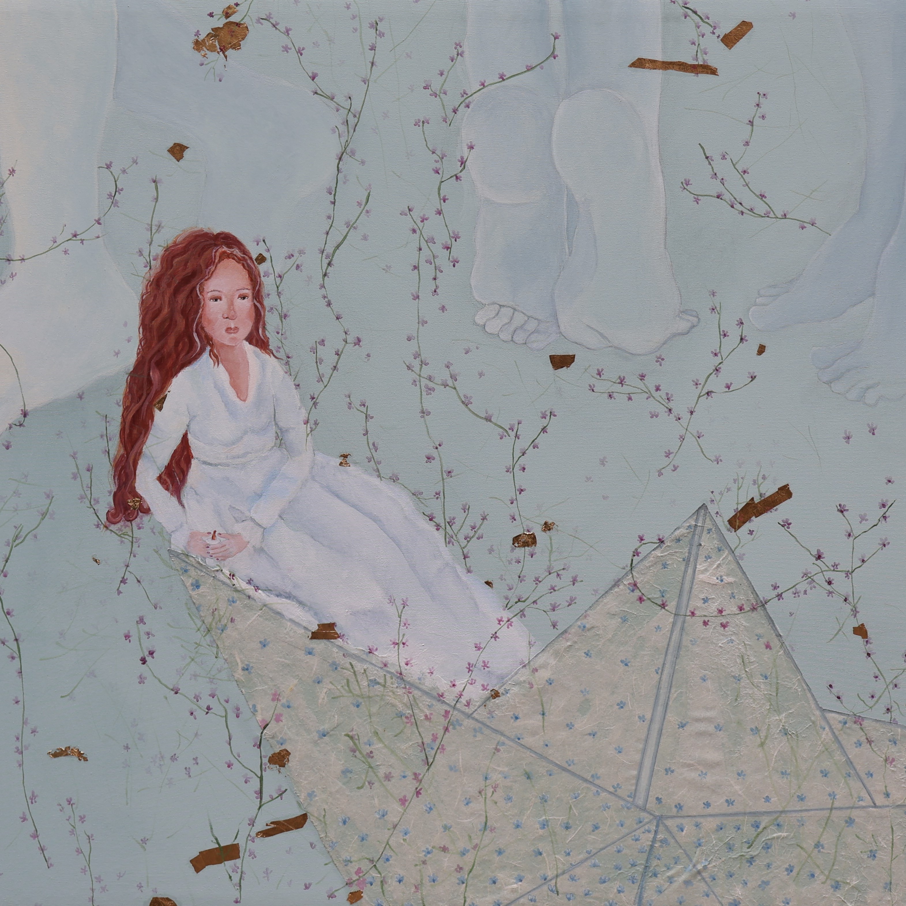 Ogni artista si apre a un dialogo che restituisce un grande affresco dove confluiscono, attraverso medium diversi, aree di ricerca che indagano il tessuto contemporaneo nelle trame dell’esistenza. Parliamo del tema della memoria e della percezione del tempo, dei ricordi, o dell’inconscio e dei suoi luoghi inesplorati, passando per il corpo femminile, sinuoso e fluttuante come un velo o scultoreo. La donna e il suo essere nella società odierna è vagliata nel suo scardinarsi dal classico ruolo di angelo del focolare, e allora l’immagine femminile è dipinta mentre è rinchiusa in asfissianti ambientazioni domestiche permeate di infiorescenze, o è alle prese con comuni faccende. Si passa anche all’attualità più stringente, con tematiche sociali che toccano l’antispecismo o più direttamente legate al mondo femminile, delineando percorsi che per quanto dolorosi portano alla rinascita e al ritrovamento di sé. L’arte ha un valore sociale, di avvicinamento tra le persone, di unione, come un rito collettivo dove regna il principio greco della kalocagathia, dove ciò che è bello è anche buono.