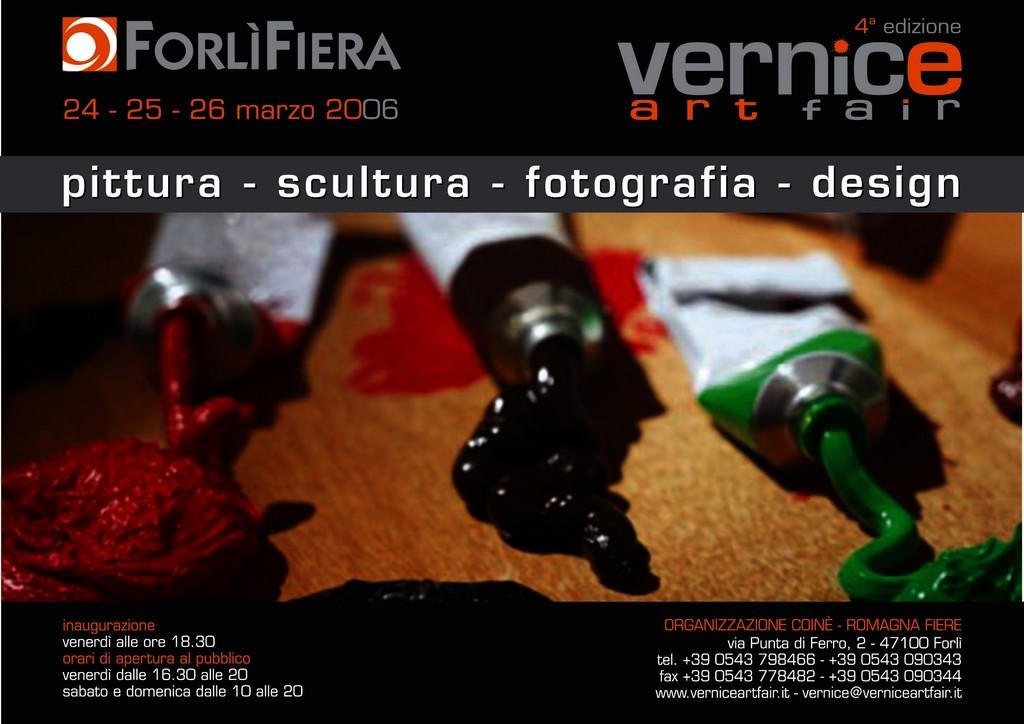 Alla sua quarta edizione si svolgerà dal 24 al 26 marzo 2006 alla Fiera di Forlì cercando di sensibilizzare le imprese, le gallerie e gli enti pubblici e privati a investire sui nuovi talenti. Vernice Art Fair vuole, infatti, caratterizzarsi sempre più come traid d’union tra imprese e arte per valorizzare le forze emergenti del nostro straordinario patrimonio creativo. Una sorta di attualizzazione del modello rinascimentale del mecenate per innescare un circuito in grado di dare propulsione e vitalità alla giovane arte italiana. Questo perché Vernice art fair intende catalizzare l’attenzione sull’arte contemporanea fuori dai circuiti obbligati con azioni di formazione, sensibilizzazione e informazione per stimolare imprese piccole e grandi a diventare motore di sviluppo culturale.