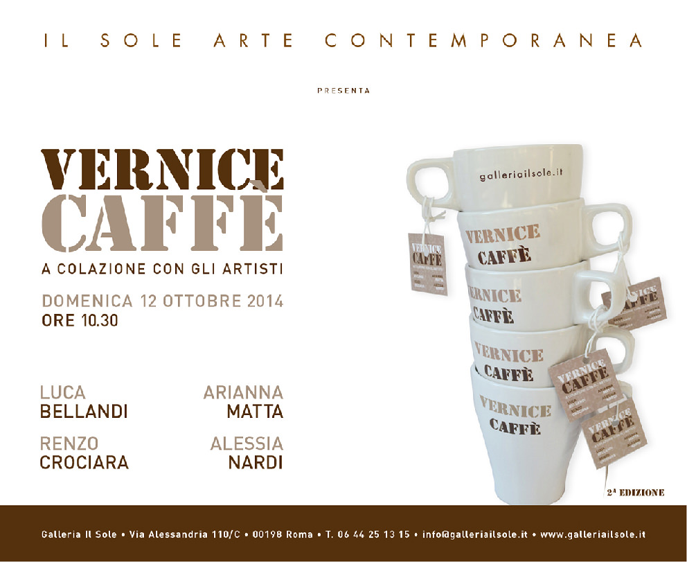 Domenica 12 ottobre alle ore 11.00, la Galleria Il Sole inaugura la seconda edizione di “Vernice Caffè – a colazione con gli artistii”. Negli spazi di Via Alessandria saranno esposte le opere di Luca Bellandi, Renzo Crociara, Arianna Matta e Alessia Nardi.