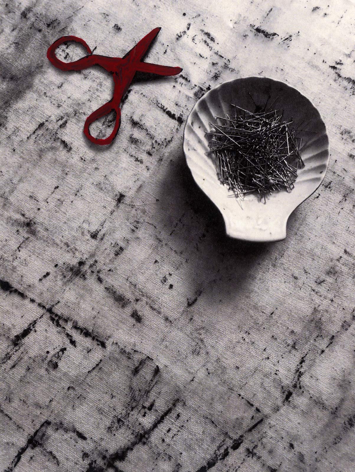 In mostra 30 opere inedite (acrilici su stampe fotografiche) ci conducono all'interno di un atelier dove, a fine giornata, si ripongono gli oggetti utili alla creazione: forbici e pennelli di dimensioni varie, spilli, recipienti, compongono un universo popolato di strumenti "a riposo" fino al mattino successivo, in cui operosi ritroveranno la loro "funzione" tra le mani dell'artista.