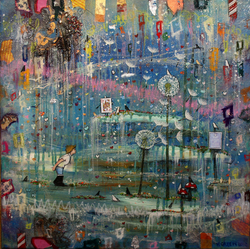 Colori densi e vivaci, materiali luccicanti ed un pizzico di pittura fluorescente, questi gli ingredienti che permettono all’artista neozelandese Veronica Green di aprirci le porte del suo mondo incantato. Una volta immersi nel suo universo fiabesco, saranno gli elementi simbolici, e dunque le molte