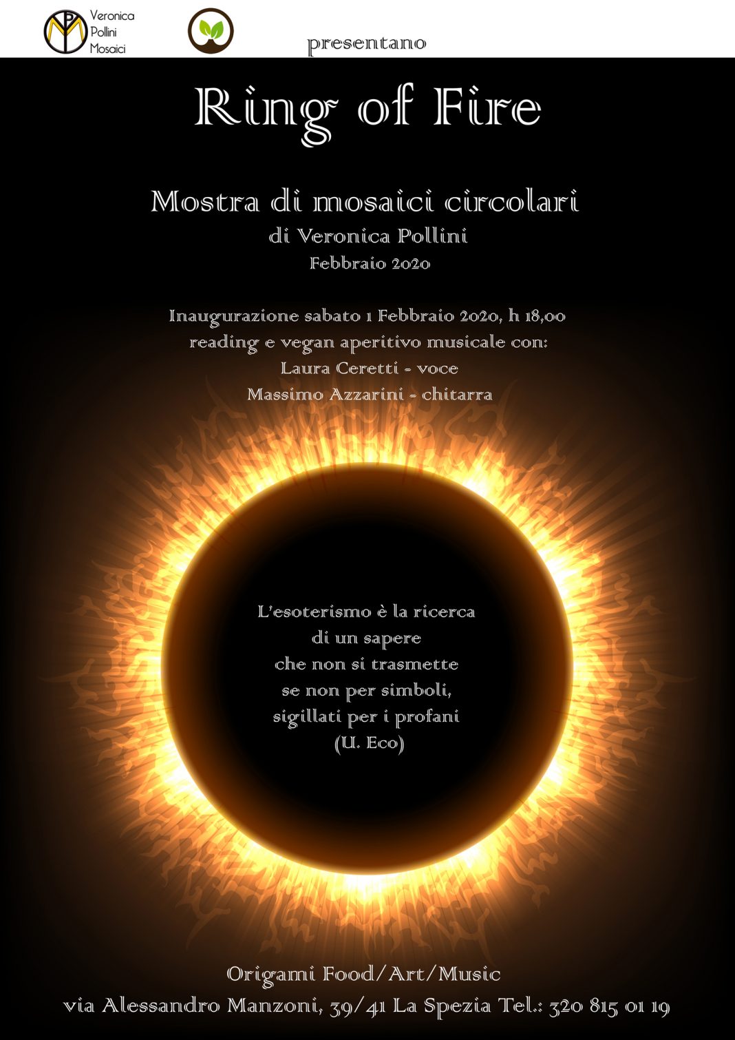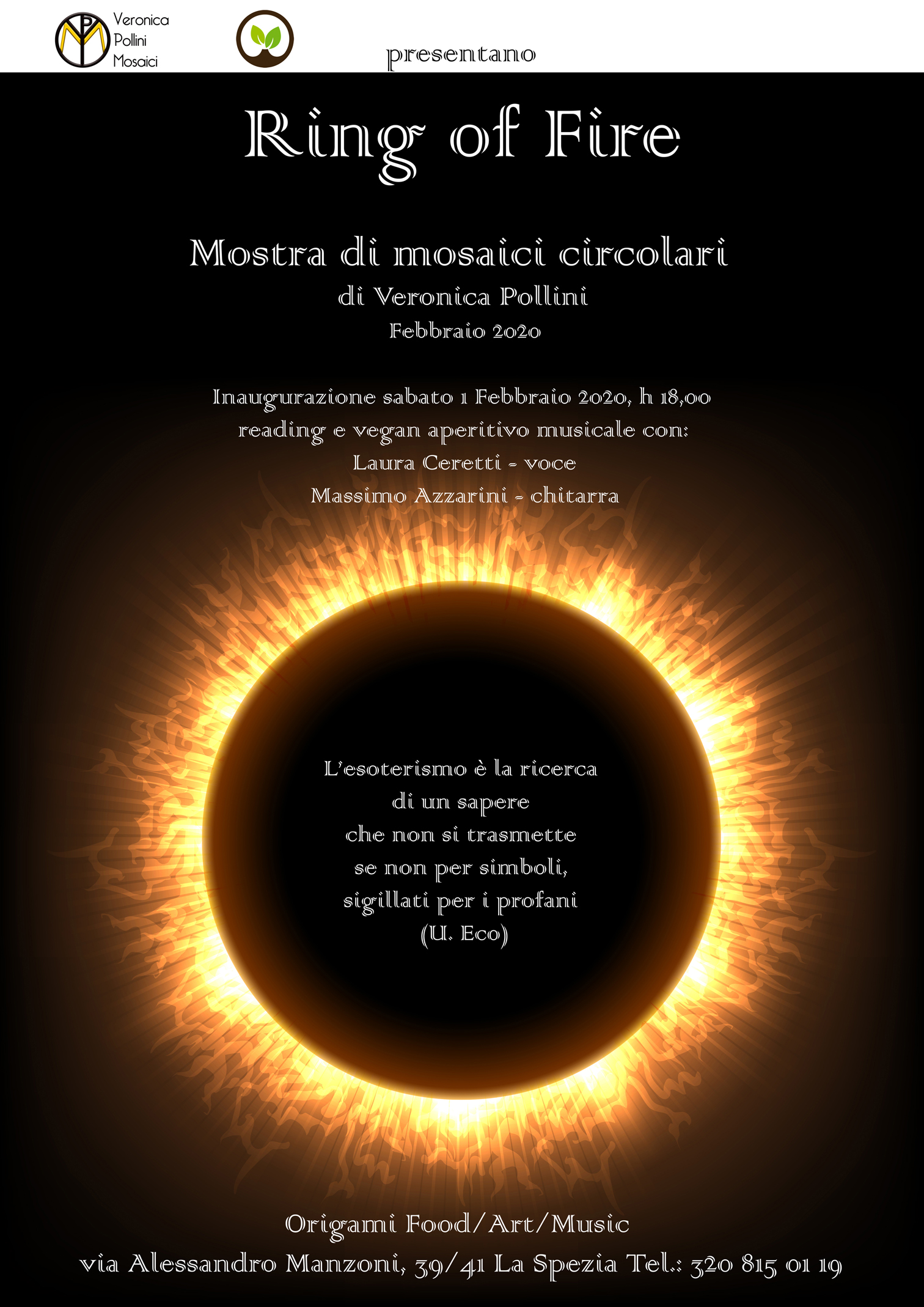 “Ring of Fire” è il titolo della mostra di mosaici circolari di Veronica Pollini, organizzata alla Spezia presso Origami Food/Art/Music, in via A. Manzoni 39/41