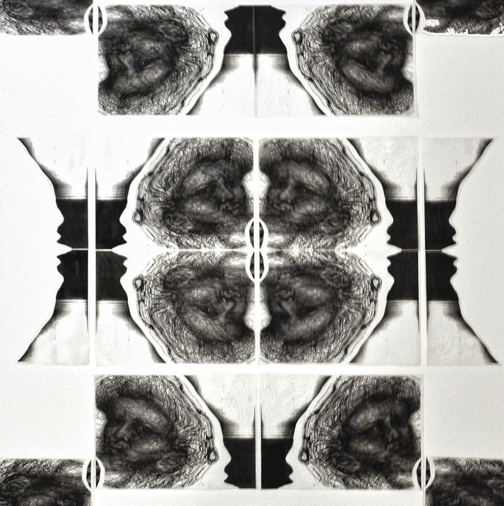 SCISSIon propone lavori realizzati tra il 2011 e l’inizio del 2012. Il lavoro di Veronica Vecchione nasce dal gesto manuale del disegno e dell’incisione, che muta forma e dimensione nell’incontro con la macchina fotocopiatrice; momento in cui l’errore diviene forza generatrice di nuove forme.
