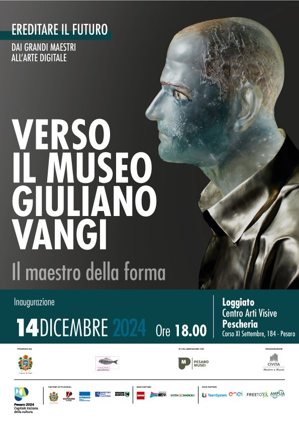 Aprirà sabato 14 dicembre, alle ore 18, nel suggestivo loggiato della Fondazione Pescheria- Centro Arti Visive Pescheria a Pesaro, la mostra ‘‘Verso il Museo Giuliano Vangi. Il maestro della forma’ promossa dal Comune di Pesaro e Fondazione Pescheria - Centro Arti Visive in collaborazione con Pesaro Musei e l’organizzazione di Civita Mostre e Musei. L’esposizione rappresenta il secondo appuntamento del ciclo espositivo denominato ‘Ereditare il futuro: dai grandi maestri all’arte digitale’, rassegna facente parte del ricchissimo palinsesto di Pesaro Capitale italiana della cultura 2024.