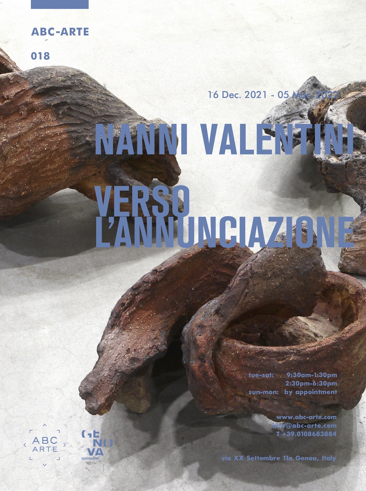 Il giorno 16 Dicembre 2021 ABC-ARTE apre al pubblico a partire dalle ore 14:30 a Genova la mostra Verso l'Annunciazione. Nanni Valentini. Gli anni ultimi.