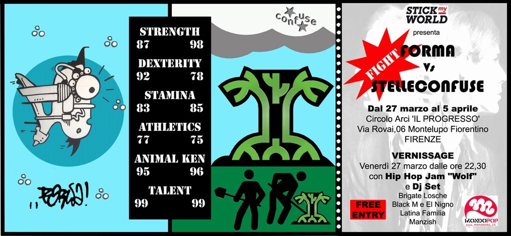 Secondo mese di Versus2009, ciclo di “personali a due” organizzate ed autogestite ontemporaneamente in tutta Italia dagli stessi “urban/street artist” partecipanti e che coinfluiranno alla fine di giugno nell’omonima collettiva presso la galleria MondoPop di Roma, nonchè nel terzo appuntamento di StickMyWorld presso il Circolo degli Artisti di Roma.