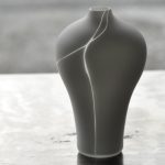 Infine, i concetti di grazia e purezza sono trasformati da Ryo Sekino in eleganti vasi orientaleggianti in vetro bianco satinato e percorsi da fessure di luce che penetrano nelle parti non satinate. Il richiamo immediato è alla centenaria arte del kintsugi, tecnica di restauro giapponese tramite materiali preziosi legata a concetti filosofici quali l’apprezzamento dell’unicità e le imperfezioni che diventano bellezza.