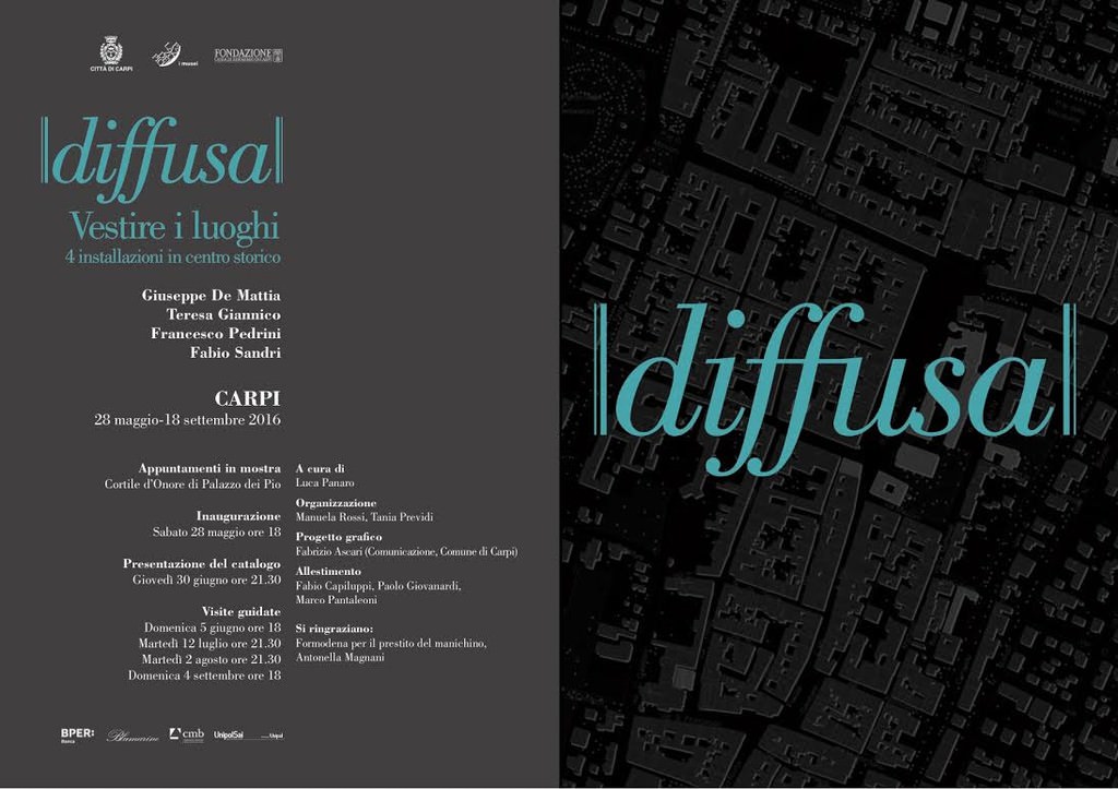 Dal 28 maggio al 18 settembre 2016 il centro storico di Carpi (Modena) diventa museo a cielo aperto in occasione di Vestire i luoghi, mostra diffusa che racconta attraverso quattro interventi artistici in altrettanti luoghi simbolici, il carattere della città e le sue specificità. Con particolare riferimento al rapporto con il comparto della moda, nel rispetto dello status che fa di Carpi il fulcro di un distretto del tessile di assoluta rilevanza.