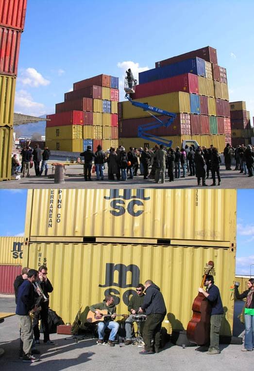 Tra containers e costruzioni industriali in disuso musicisti e pubblico sono diventati parte attiva di una scenografia surreale in cui, lavorando su più livelli mentali, la periferia si trasforma e offre una nuova chiave di lettura di sé, un est diventa altro est, e i connotati e le identità si confondono e si sovrappongo.