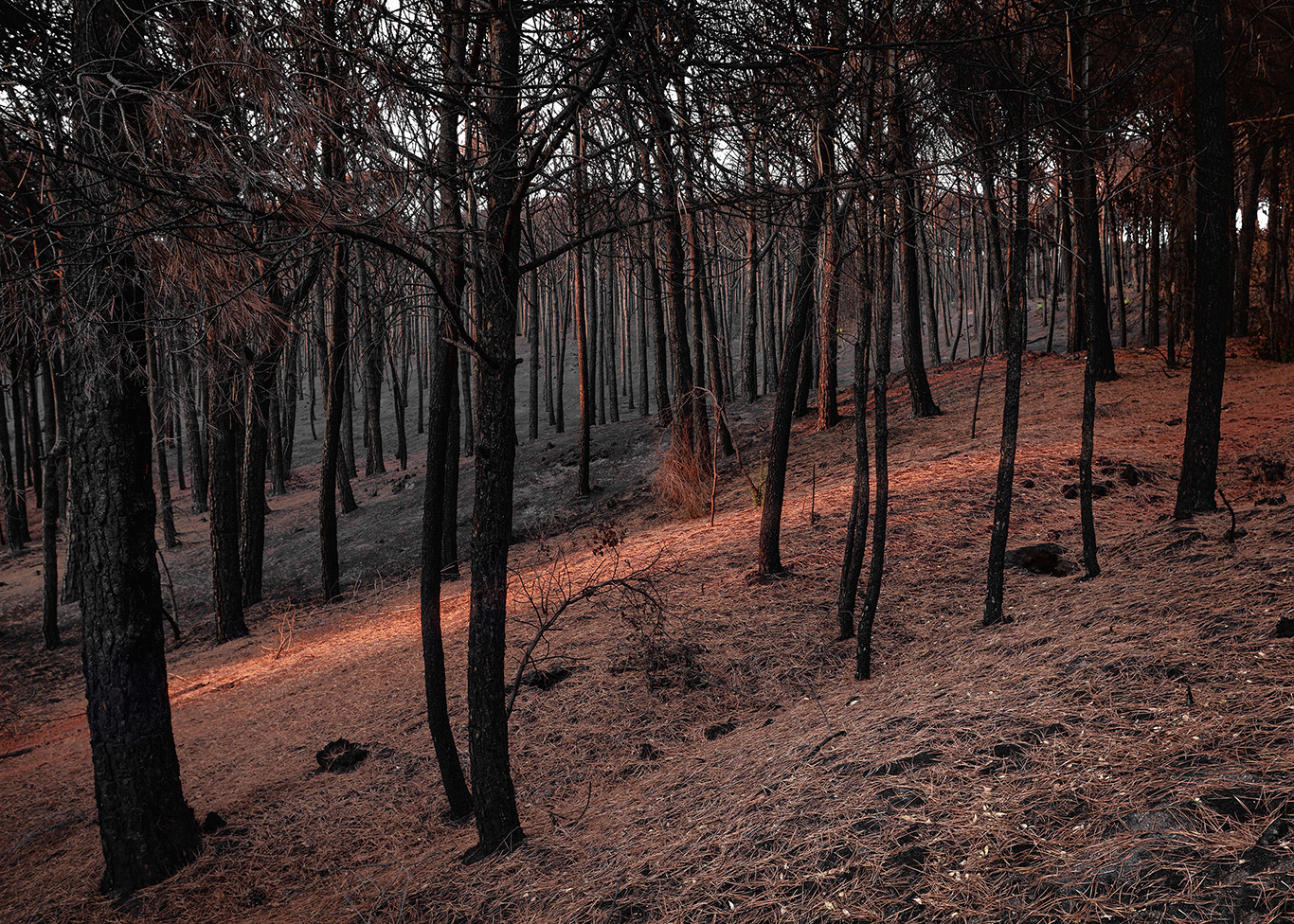 Vesuvio, 11 luglio 2017 è un progetto fotografico realizzato sulle pendici del Vesuvio all’indomani dell’incendio del 2017 che travolse e distrusse numerosi ettari del paesaggio boschivo del vulcano. Coinvolto come volontario sin dai primi momenti dell’incendio per aiutare nei soccorsi, Maurizio Esposito ha successivamente avviato la sua ricerca fotografica durata oltre tre anni, grazie alla quale ha registrato non solo le forme di devastazione di un paesaggio ferito ma anche un tempo che, nelle sue espressioni più latenti e inesorabili, è capace di risanare i danni e parallelamente una natura che si riappropria dei suoi spazi.