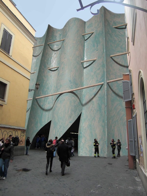 Simulazione informatica del rapporto tra scultura e città, in questo caso il centro di Roma. Lo spazio scultoreo si apre all’osservatore non come quinta visiva ma come corpo volumetrico nel quale la piega diviene misurata modulazione di concavità e convessità, richiamando le più ardite concezioni borrominiane