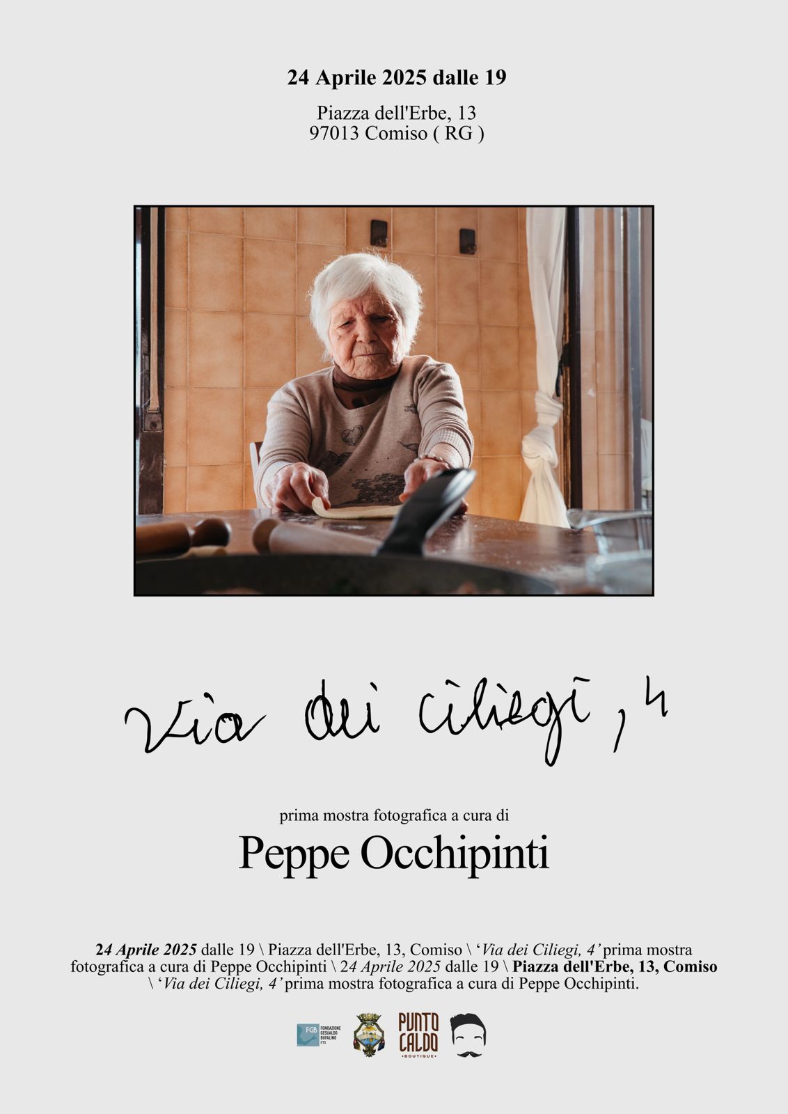 COMISO (RG) - Ci sono luoghi che non esistono sulle mappe, ma che abitano dentro di noi. E ci sono gesti che, più di mille parole, raccontano chi siamo. La mano rugosa che affonda nella farina, la pasta che si stende lenta, il pane che nasce da un avanzo d’amore, da un resto di impanata pasquale. È nei ricordi di bambino che nasce “Via dei Ciliegi, 4”, la prima mostra personale di Peppe Occhipinti, giovane videomaker e fotografo ibleo. Si inaugura il 24 aprile alle ore 19,30 alla Fondazione Bufalino di Comiso. Diciotto scatti e un video, come un album di famiglia scritto in silenzio. Non ci sono pose, né artifici: c’è la nonna Giovanna, la vera nonna di Peppe, ritratta mentre prepara il pane e le impanate. Un gesto che ha visto compiere decine di volte da bambino, e che ancora oggi, da adulto, continua a emozionarlo. Un gesto che è ritmo, memoria, convivialità, famiglia, a volte anche festa. È il senso di casa. “Via dei Ciliegi, 4” non è dunque solo un indirizzo, ma un luogo immaginario, potente, necessario. Quella casa che ognuno porta dentro. Quella che spesso si fatica a descrivere, ma che basta un profumo per ritrovarla nei propri ricordi, nella propria anima. Casa è l’ispirazione profonda di questo progetto fotografico, nato quasi per caso o per destino. “Tutto è cominciato con un messaggio di Luca Guastella, che mi proponeva di realizzare qualcosa per i 25 anni della sua attività, Punto Caldo Boutique, specializzata nel senza glutine - spiega Peppe - All’inizio ho detto di no. Non mi sentivo pronto. Ma poi… il cambio di rotta, quella macchina spenta qualche isolato prima di casa, quella voce dentro che bruciava. Sono stato immobile per un po’, quasi in trance. Dopo qualche minuto riparto. Ma cambio meta: non torno a casa, vado da Luca. Con un’idea, che già mi brucia dentro. La voglio fare, questa mostra. La mia prima mostra personale, nella mia città, a Comiso, la città di Bufalino”. E così nasce l’idea della mostra, non solo un’esposizione fotografica ma un’esperienza, un viaggio emotivo, arricchito dall’attore Giovanni Arezzo che accompagnerà i visitatori con una narrazione originale, pensata per fondersi con immagini, video e silenzi. La grafica porta la firma di Marica Zappalà, mentre i caratteri usati portano, letteralmente, il segno della nonna: il font è stato disegnato a mano da lei. “Non volevo solo mostrare delle immagini. Volevo creare un piccolo terremoto interiore. Far rallentare il respiro, far ricordare a ognuno cosa sia, davvero, casa. Semplicemente casa”, dice Peppe. E così, quel pane che nasce dalla pasta di scarto dell’impanata diventa simbolo di un’arte più grande. Quella di tenere viva la memoria, di dare forma ai sentimenti, di restituire valore a ciò che spesso passa sotto silenzio. Un pane che si fa poesia, una casa che si fa mostra. E una strada, Via dei Ciliegi, 4, che forse non troveremo mai su Google Maps o forse si, ma che è già casa in ognuno di noi.