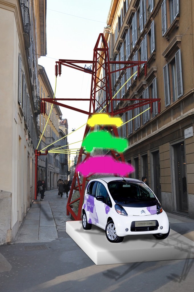 In occasione della settimana della moda donna milanese (23 febbraio – 6 marzo 2011), una tra le fashion street più famose al mondo si trasforma in una “centrale elettrica”: Via della Spiga, una vetrina di forte richiamo ed impatto, crocevia e polo d’attrazione dei media nazionali ed internazionali, è allestita con pali, tralicci e fili dell’alta tensione, attraverso una scenografia che comunica un messaggio forte e deciso sulla strada da prendere. Elettricità è la parola chiave di questo evento. Mai come oggi il problema delle fonti energetiche esauribili e delle emissioni di CO2 fa discutere il mondo: il progetto “Via della Spiga per Citroën Full Electric”, ben s’inserisce in questo contesto sociale ed ha come tematica dominante l’energia ed il movimento ad elettricità come fonte inesauribile, in grado di condurci verso un futuro ambientale più sano e forte.