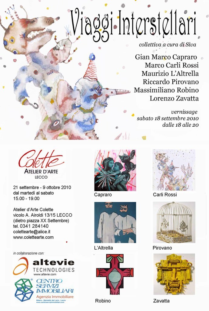 Dopo la pacifica invasione di farfalle di giugno, prosegue la serie di mostre curate da Siva all’Atelier d’Arte Colette con la collettiva “Viaggi Interstellari”.