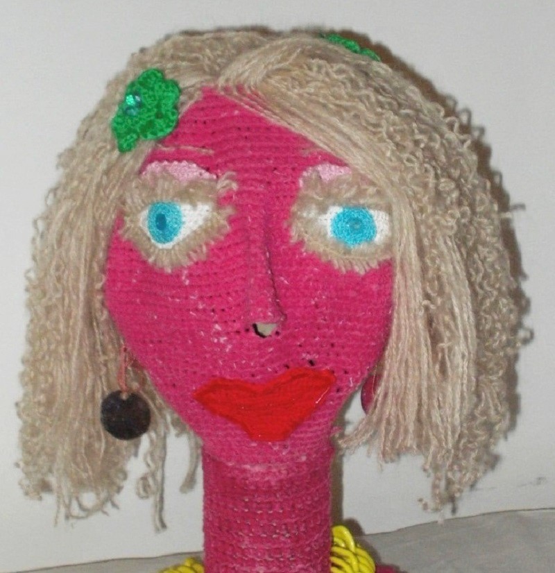 Beatrice Ercoli: Nasce a Porto San Giorgio nelle Marche il 1 Agoso1955. Ha sempre disegnato e realizzato oggetti fin da piccola. Anni fa ha sviluppato questa forma particolare di scultura: le sue facce sono lavorate utilizzando materiali di recupero, il cotone e la lana: quest’ultimi lavorati all’uncinetto e induriti poi intorno ad un palloncino con una soluzione composta di acqua e zucchero e un po’ di vinavil: è l’arte antica della tradizione femminile ereditata dalle donne della sua famiglia. Da quest’anno ha iniziato a realizzare quadri e tappeti lavorando con il cotone a punto catenella su una rete di plastica quadrettata di solito utilizzata per delimitare spazi. Ha insegnato per quarant’anni nelle scuole secondarie superiori, intervallando il lavoro con la creatività. Ha partecipato a mostre collettive dal 2007 al 2024 e due personali nel 2013 e 2024. E’ presente in Instagram e Facebook e youtube. https://www.instagram.com/beatriceercoli?igsh=d2Izemc2cWYxN3lw