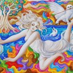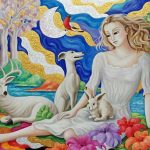 E’ una pittura, quella di Daniela Tesi, dalle apparenze di immediata godibilità, con un residuo di costante, sottile, curiosità offerta dal racconto sempre sul filo dell’evocativo simbolico-narrativo, e della sostanza di preziosa miniera cromatica e tonale.