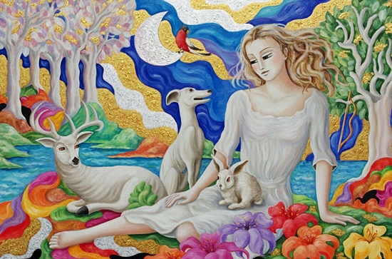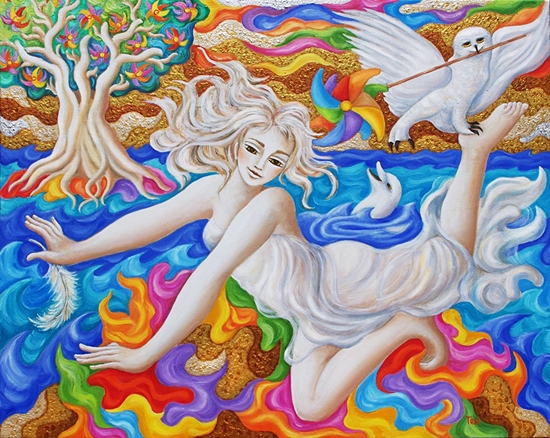 E’ una pittura, quella di Daniela Tesi, dalle apparenze di immediata godibilità, con un residuo di costante, sottile, curiosità offerta dal racconto sempre sul filo dell’evocativo simbolico-narrativo, e della sostanza di preziosa miniera cromatica e tonale.