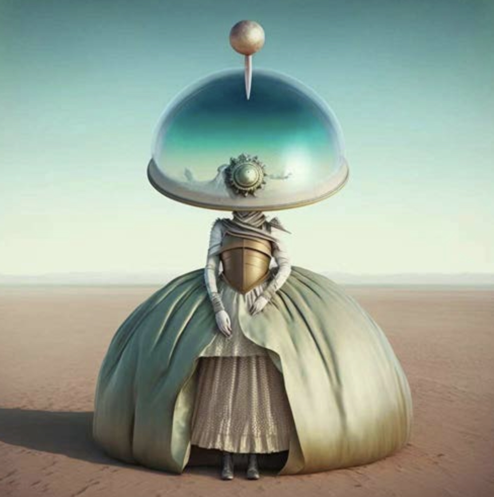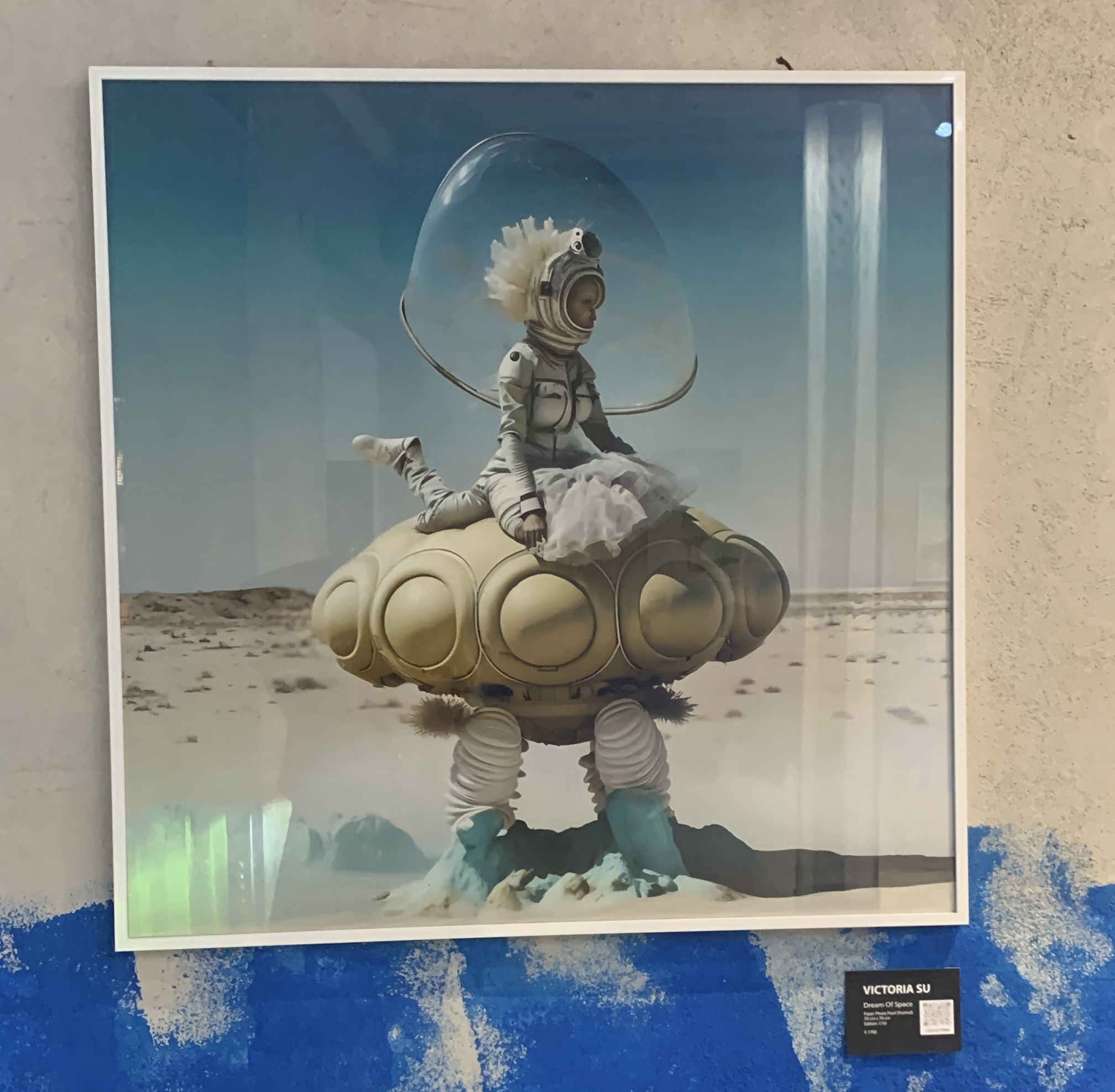 Victoria è una stilista, i suoi studi la vedono diplomata alla Marangoni, arriva da Parigi dove ha partecipato alla fashion week, è vincitrice del international Design 2023 è una fotografa quello che vedete in mostra le sue creazioni creazioni nate dall’IA
