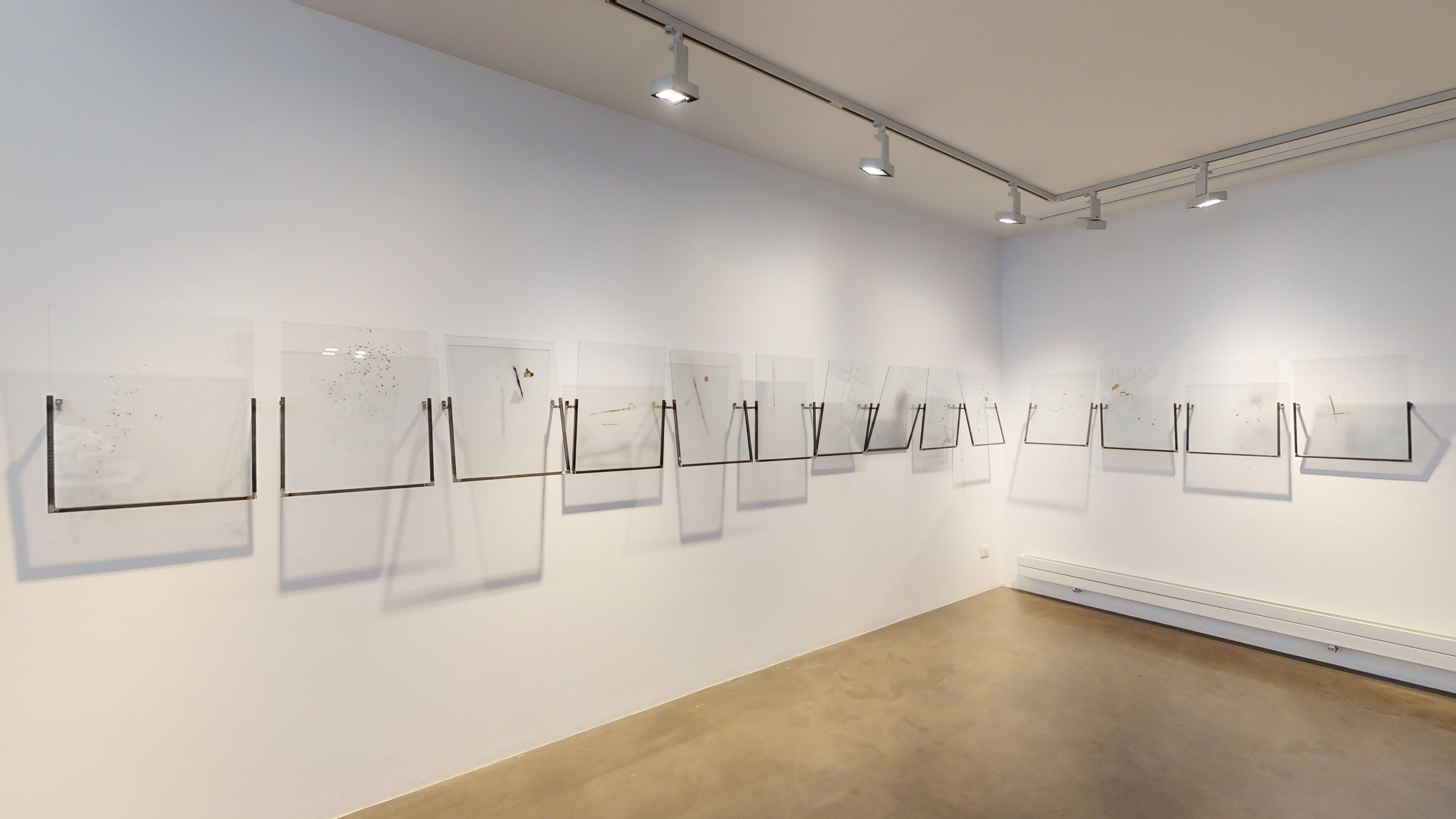 La ricerca personale di Maria Elisabetta Novello è sulla memoria e sullo scorrere del tempo. Procede con piccole modifiche, lavorando sull'assenza. L'artista corre e percorre i luoghi, fa esperienza degli spazi e delle loro trasformazioni, raccogliendo polveri lungo il suo cammino e testimonianze del presente, oltre a quelle del passato. In questo ciclo dal titolo ISTANTI, l’artista sceglie di indagare alcuni luoghi specifici, più o meno delimitati, e ne raccoglie la polvere depositata, conservandola poi tra lastre di vetro che ricordano, nella loro specificità di forma e materiali, dei grandi vetri da laboratorio, con i campioni in essi conservati pronti per essere analizzati al microscopio.