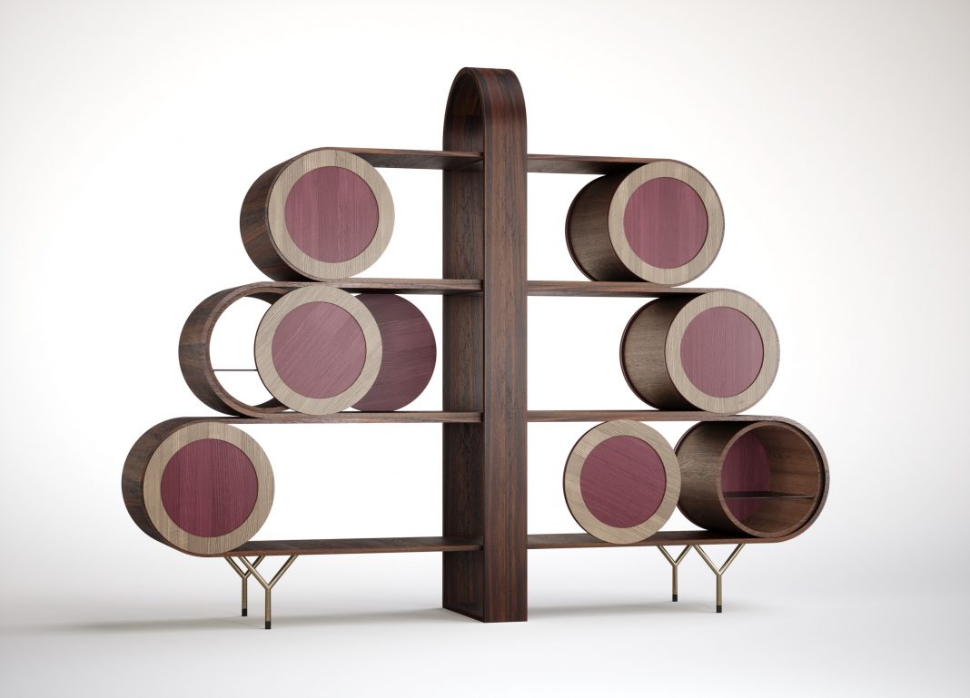 Elena Salmistraro, nome di spicco della nuova generazione del design italiano votato alla libertà creativa e di espressione, propone la libreria Roue/ruota (Emmemobili, 2019) in cui, celebrando il know-how dell’azienda, allude alla sua posizione leader nel processo produttivo del legno curvato. Il suo “mobile che non c’è”, Eppi, è un pouf extralarge, divano/isola, dal futurista poggiatesta/tromba.